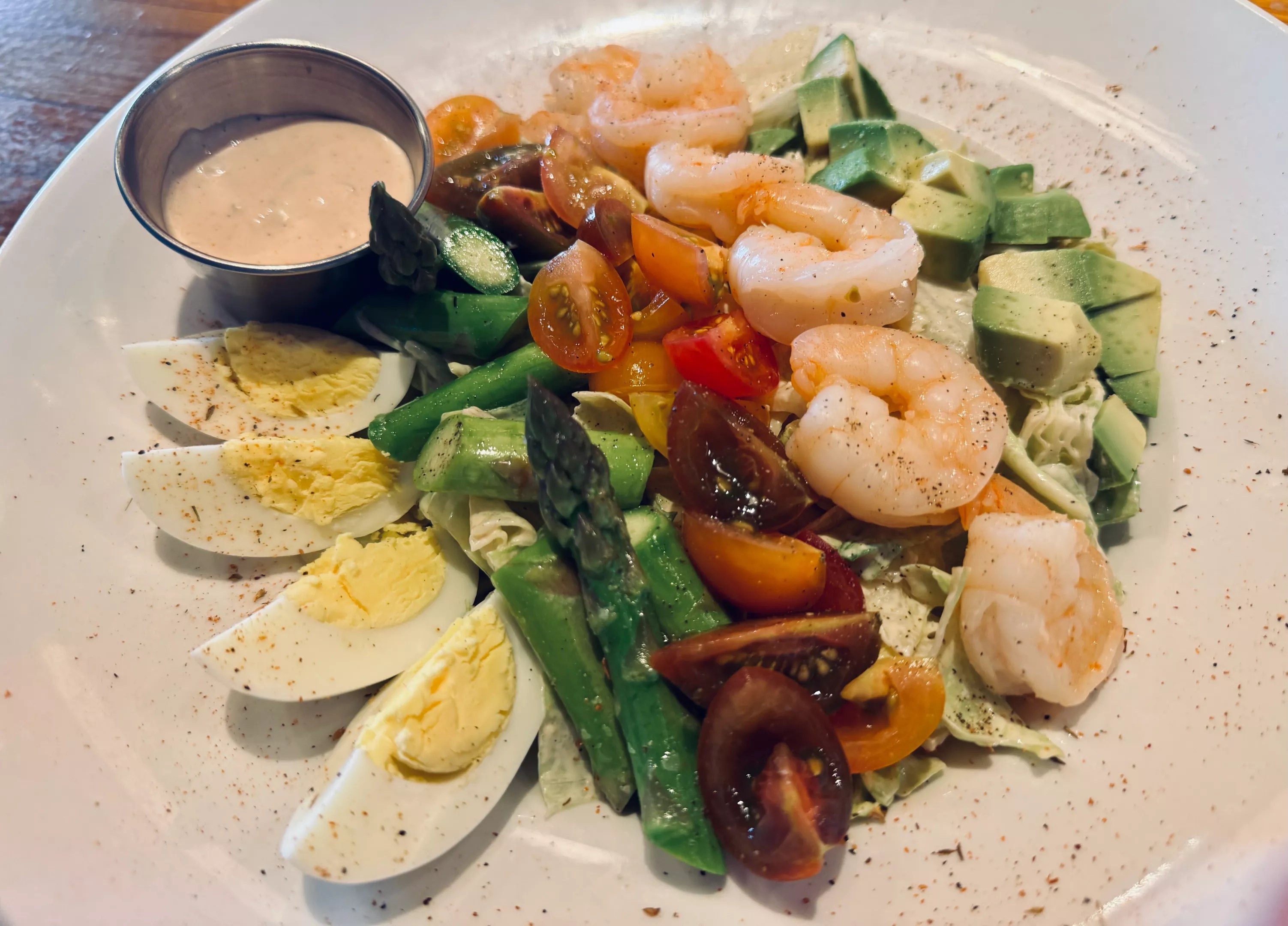 On another visit, we had The Louie, a classic popular on the East Coast from the early 20th century. This would appeal to any protein-loading fitness Instagrammer’s reel. Rows of crab, hard-boiled eggs, tomato, and asparagus line up perfectly over a bed of Louie-dressed iceberg lettuce for $16. Sixteen dollars!