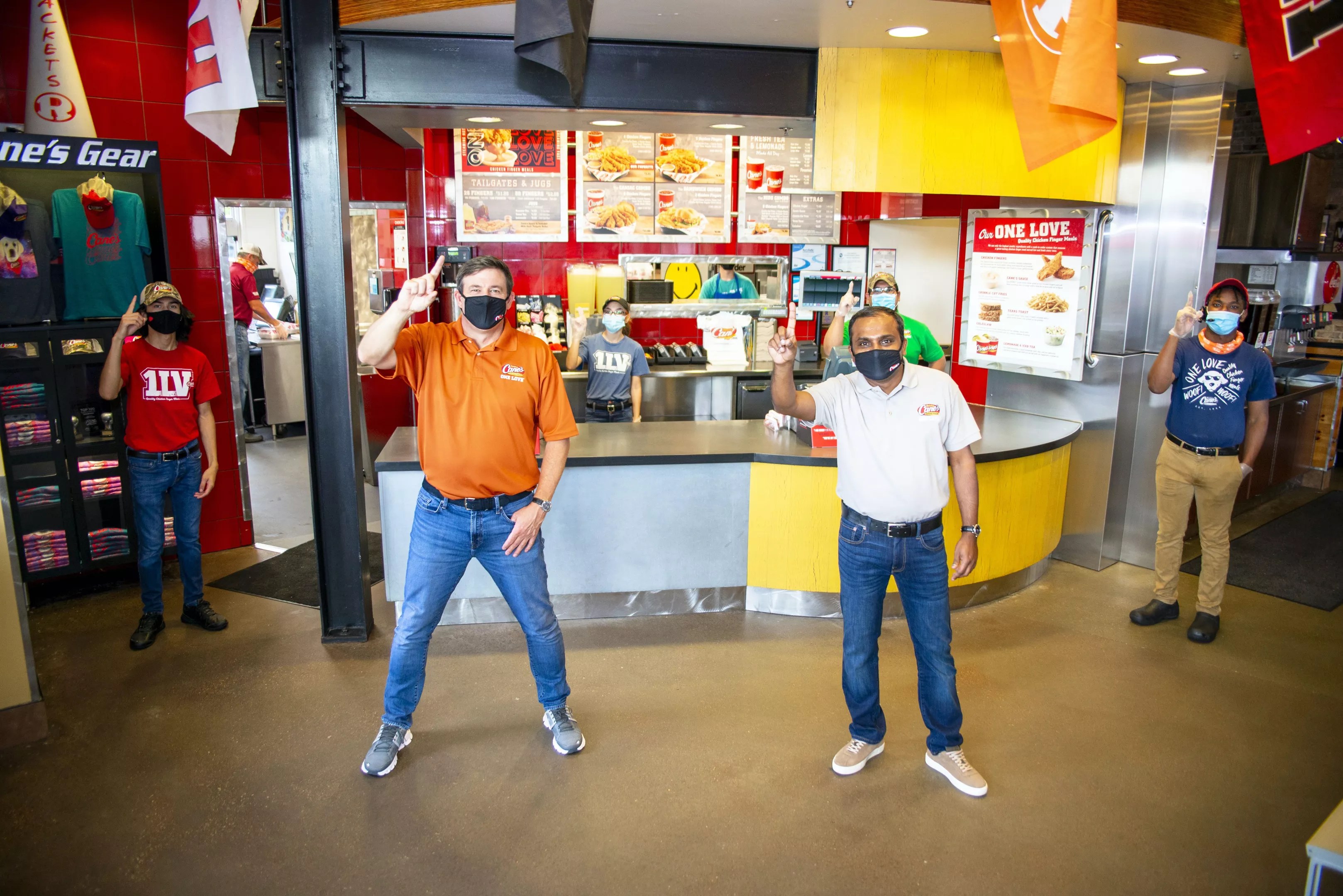 Every new hire at Cane’s RSO spends a few weeks, or months, working in a restaurant to earn their “Fry Cook & Cashier” badge, something that every person at Cane’s, no matter their level, is proud to hold in their title.
