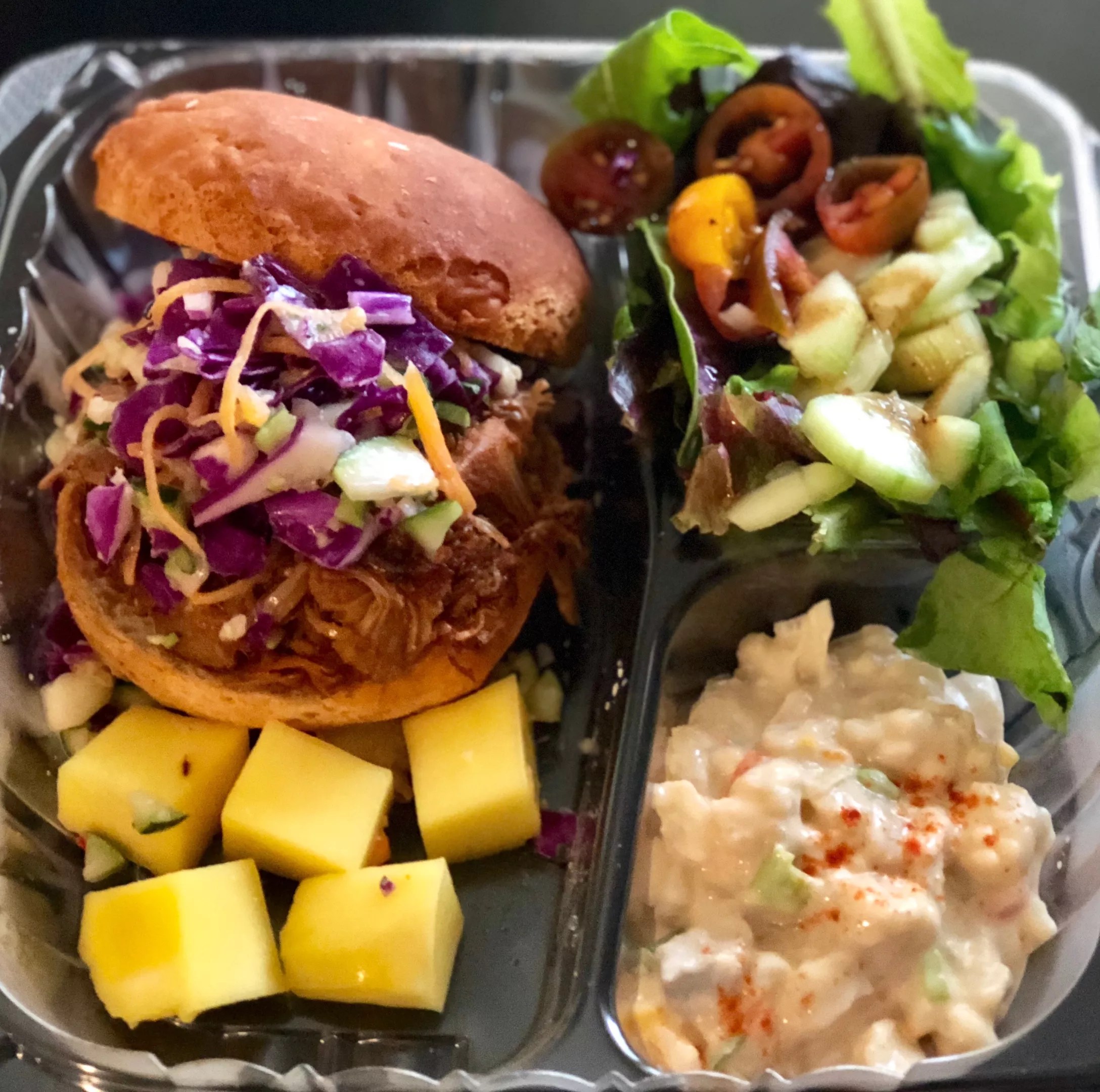 The jack fruit barbecue plate, .95, can be made as a sandwich, salad or pizza.
