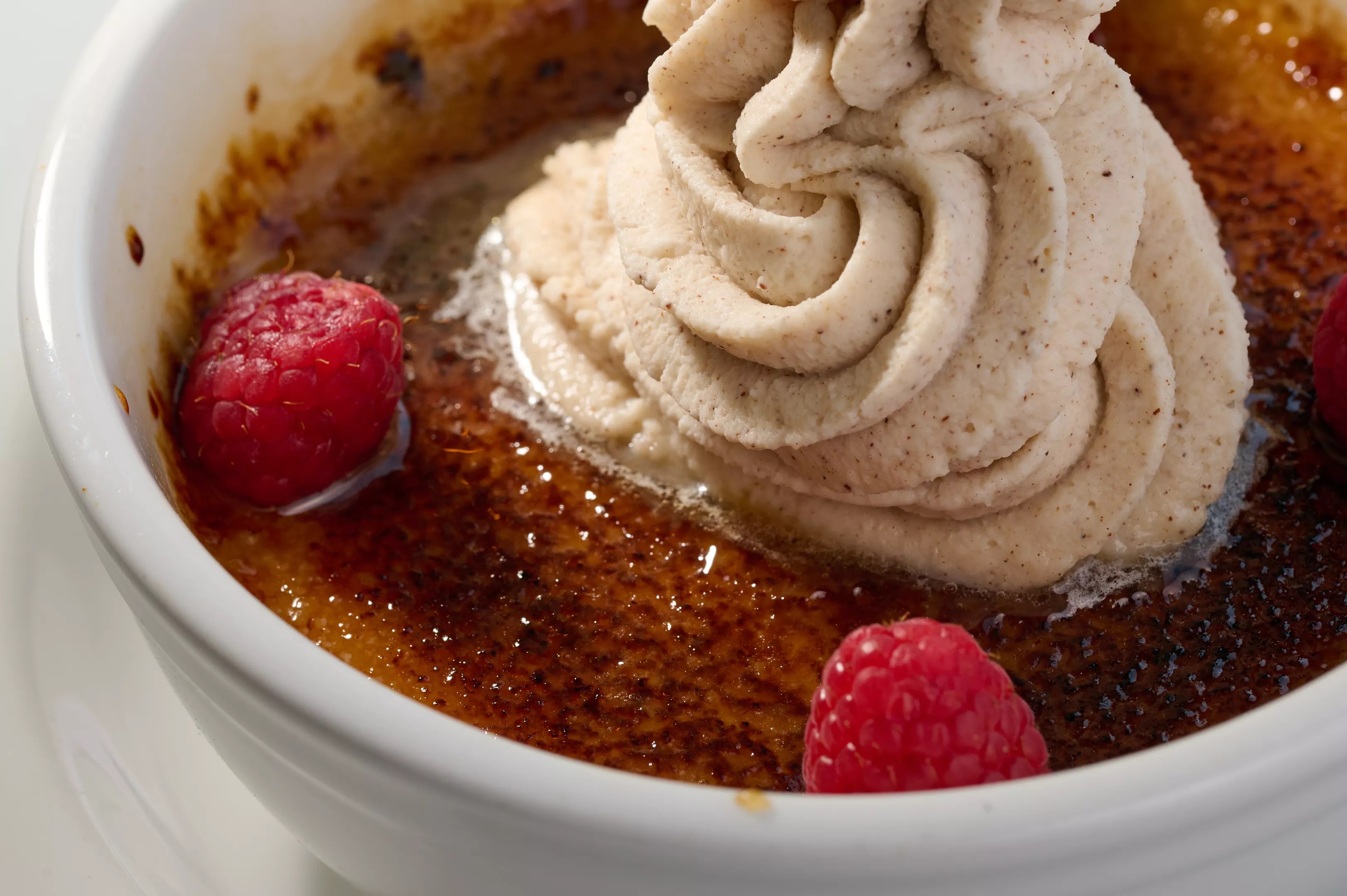 The butterscotch creme brulee is topped with a dollop of cinnamon whipped cream.