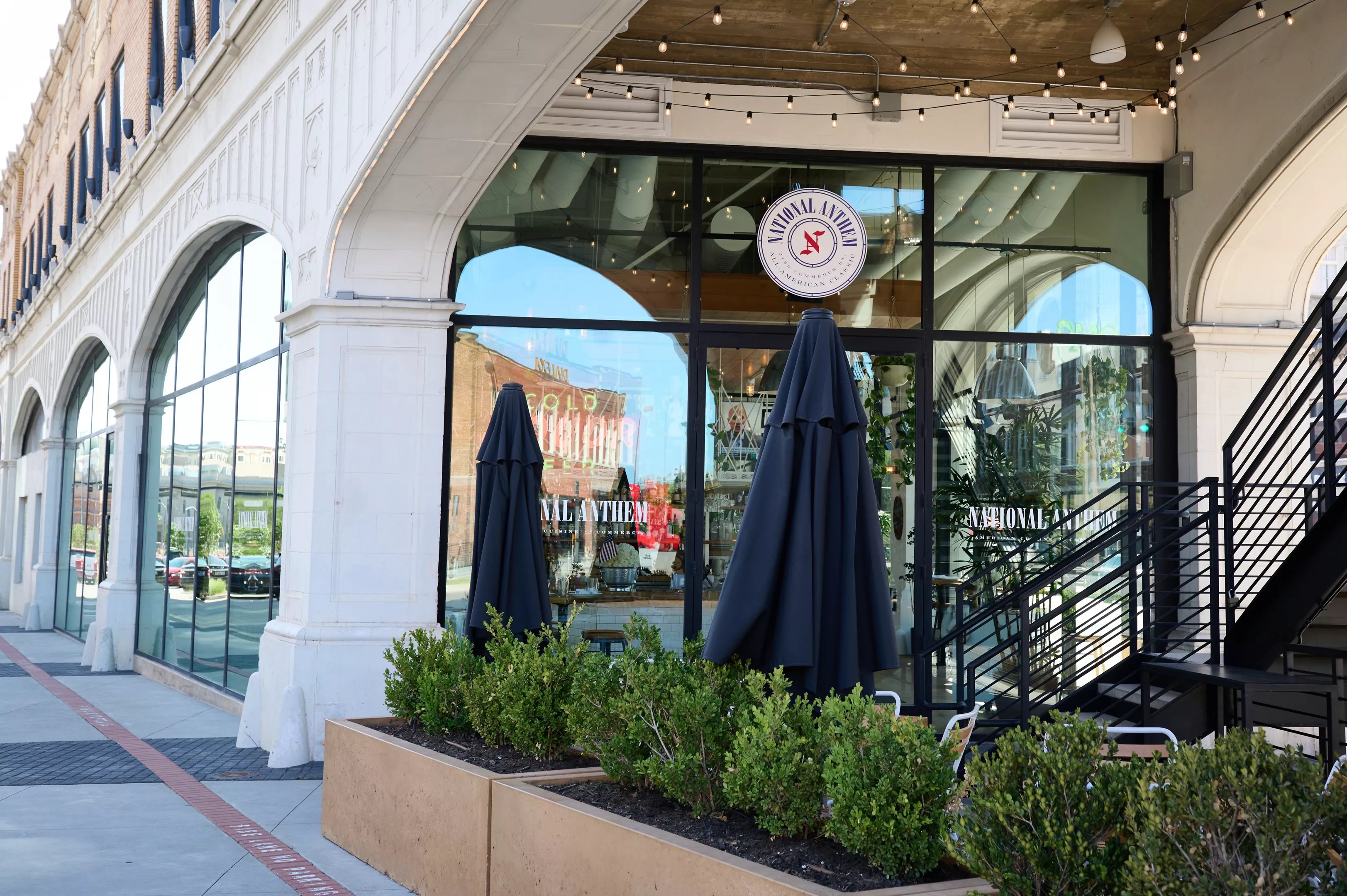 National Anthem occupies the trapezoid Magnolia Oil building, where Commerce Street, Jackson Street and Cesar Chavez Boulevard come together. One hundred years ago, this part of downtown was the epicenter of Dallas’ Automobile Row. The building arches swept over cars that drove into a full service fueling station. The service station was the ground floor, with Magnolia Oil’s offices on the second floor (the famed Magnolia Building on Akard wouldn’t open for another two, and the iconic neon Pegasus wouldn’t take its place on the roof until 1934). In the years since the building served as the longtime home of KLIF radio, and for a while, the offices of the Dallas Observer.