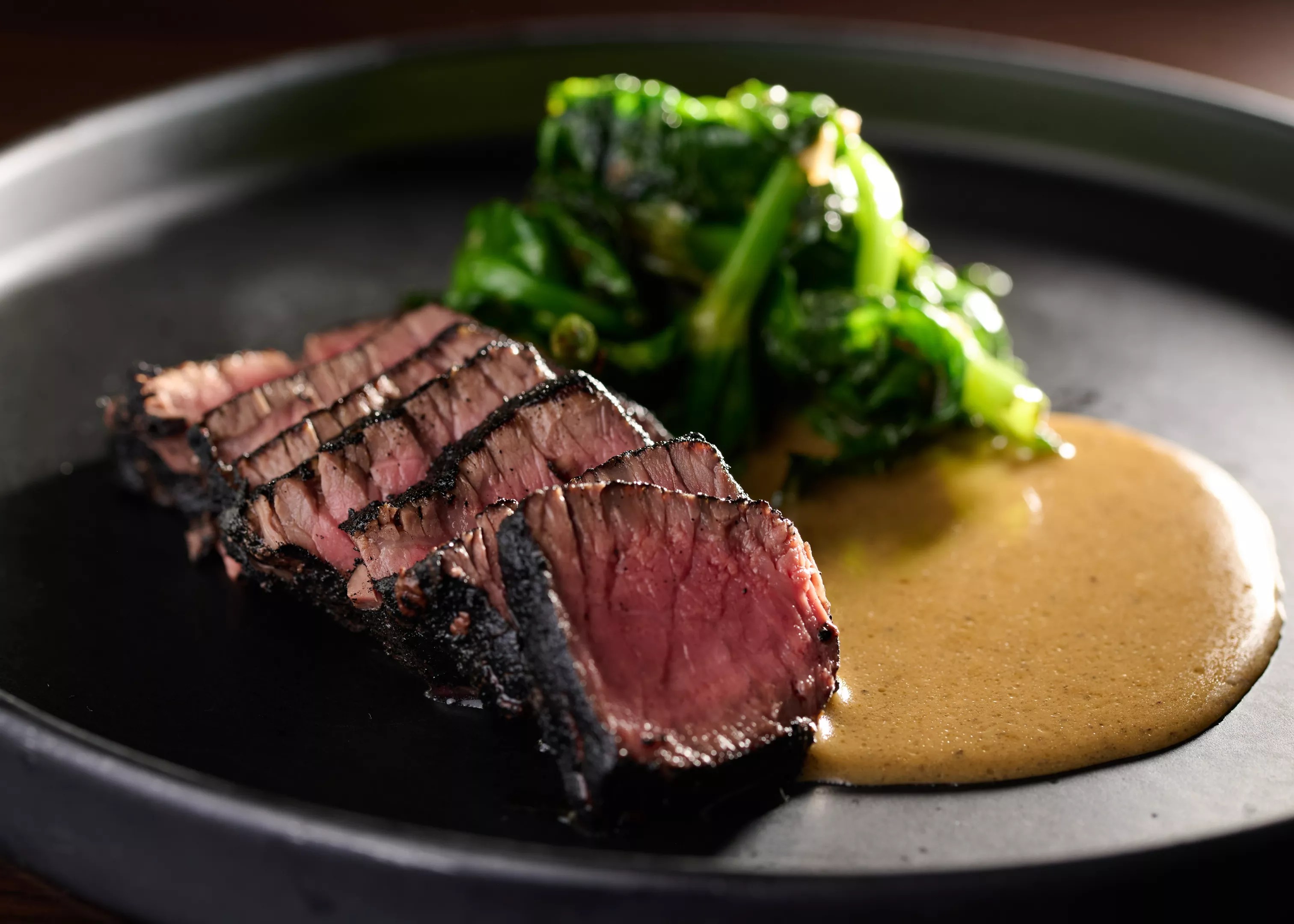 Speaking of A5, there are plenty of ways to partake if your budget allows. There’s an A5 hot rock for $70, and $115 procures an A5 strip steak from the hearth. Think of these as the garish displays of conspicuous consumption. We opted for the more modestly priced Wagyu New York strip at $48 for a four-ounce cut in a show of elegant restraint.