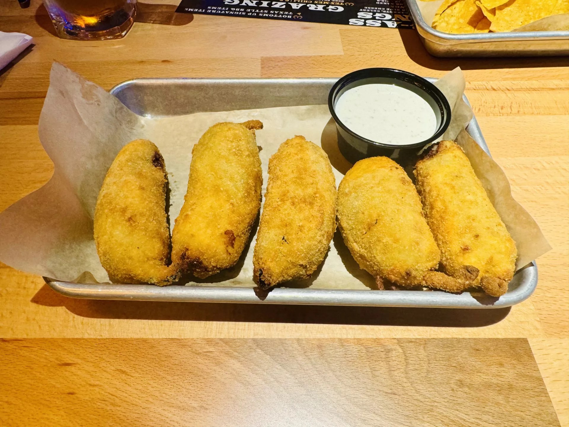 We started with a couple of appetizers, and our first choice was the chips and queso blanco ($10.50), a blend of melted white cheese, hatch chiles and brisket. It’s hard to go wrong with chips and queso, especially queso with hatch peppers and brisket. Served with tortilla chips (which were excellent on their own), this was a stellar queso dip. Next, we grabbed an order of burnt-end stuffed jalapenos ($10). These were deep-fried whole jalapenos stuffed with shredded brisket burnt ends, cheese and served with ranch. Once again, these hit the mark.