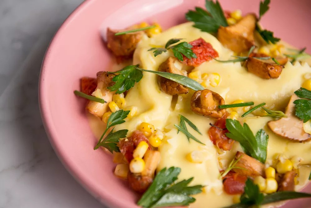 The goat cheese agnolotti () tastes like a pure, unfiltered bite of summertime.