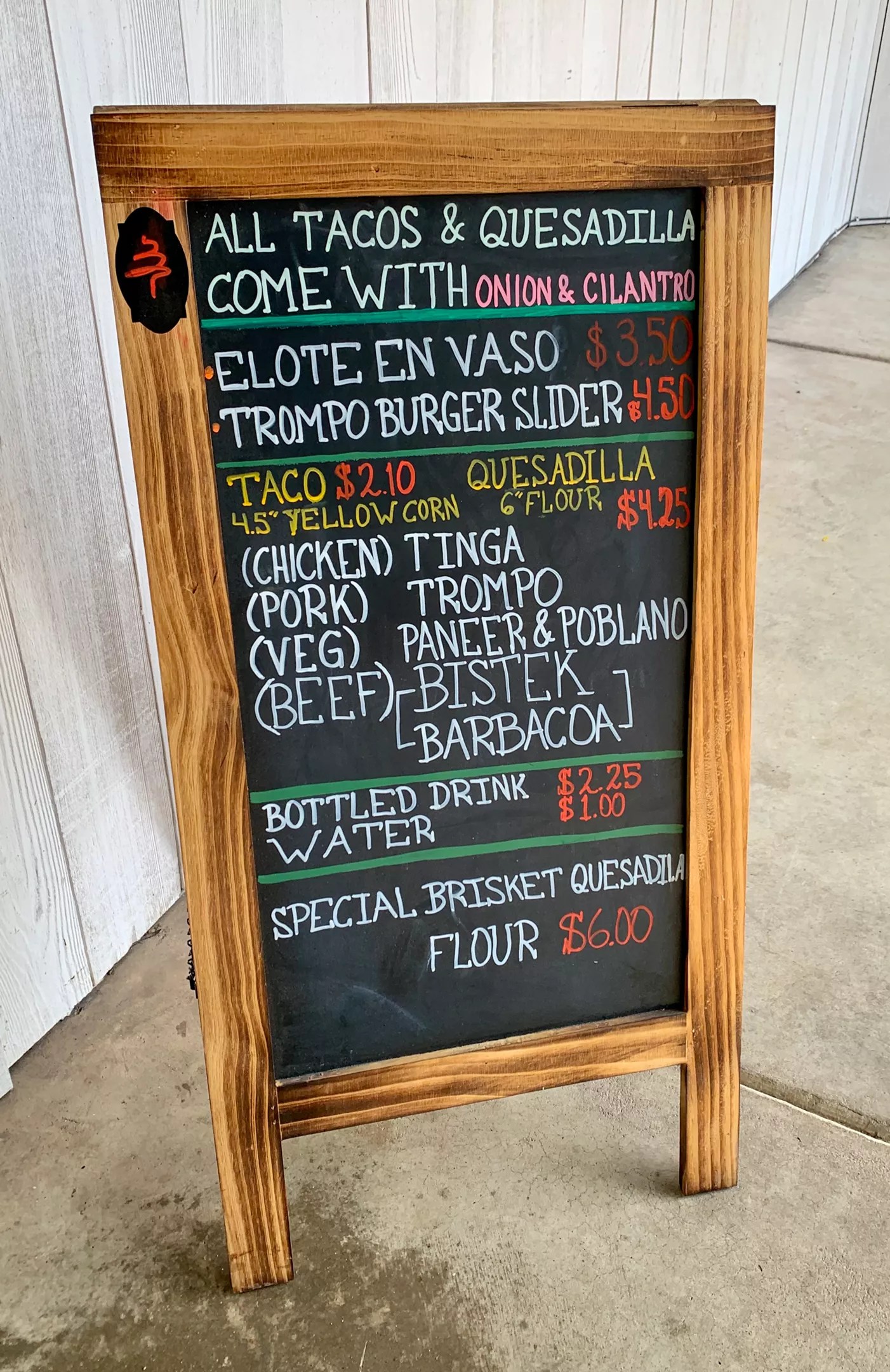 Olvera’s to-go menu sitting outside the order window.