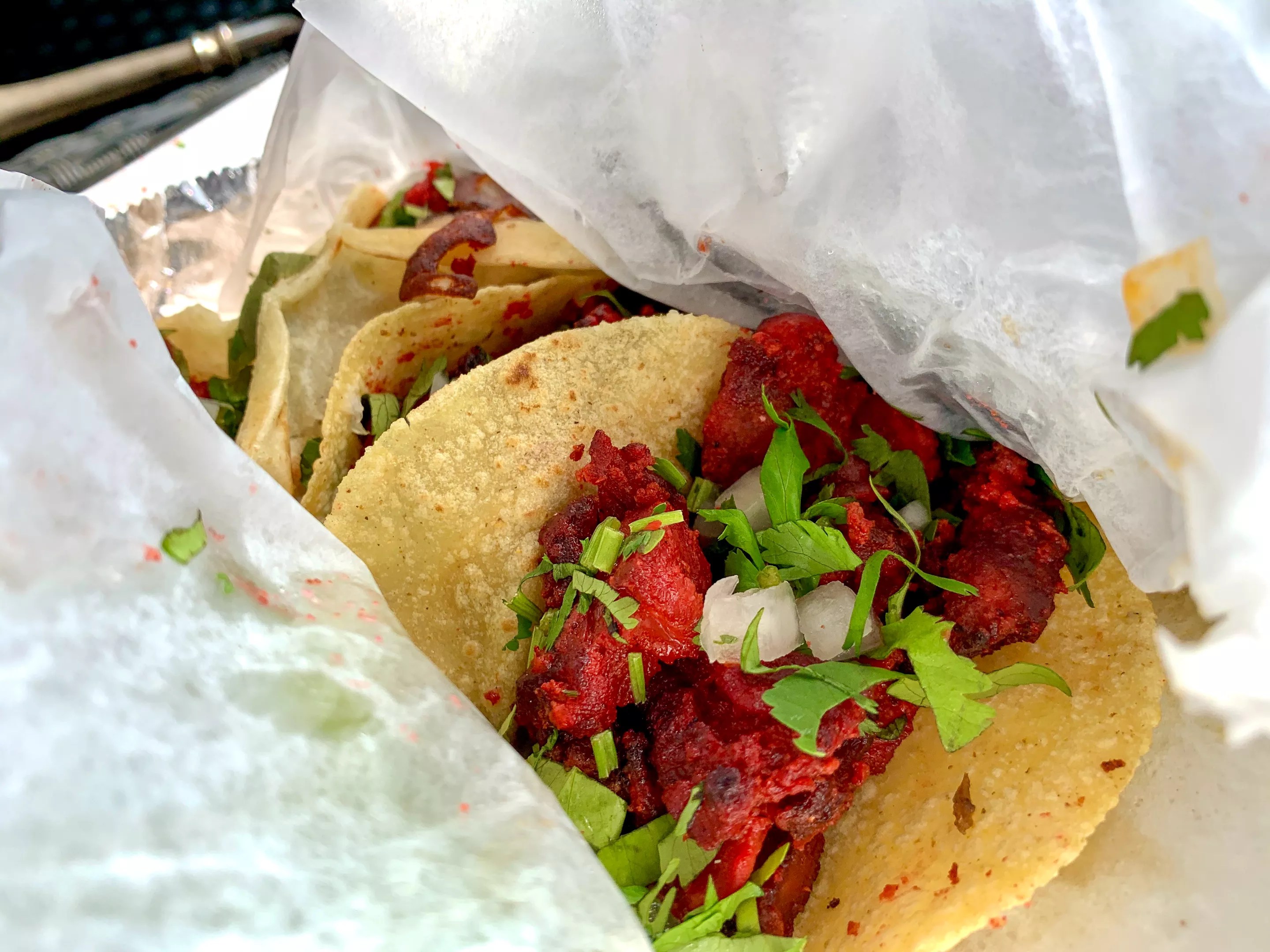 Trompo’s tacos stay beautiful, even when they’re transported.