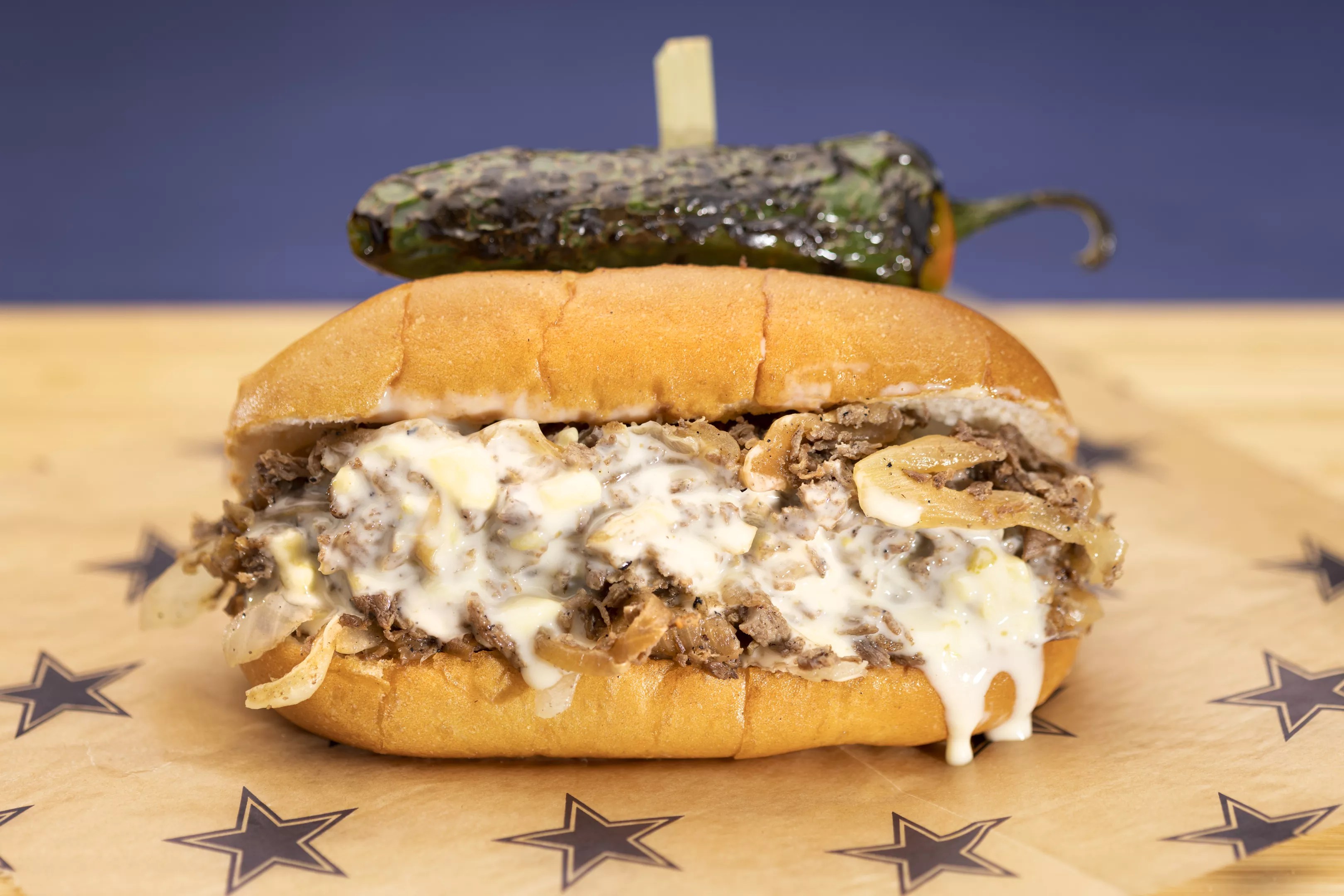 Slow-roasted steak sandwich with provolone cheese