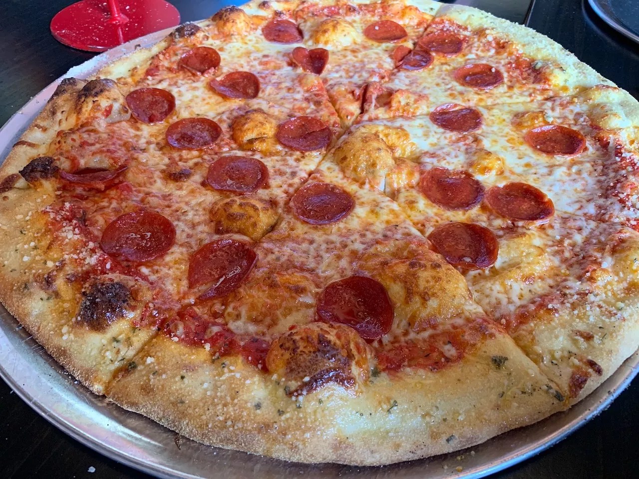 The last time I’d gone to Serious Pizza, in before times, I recall there was a birthday party spread across the dining room. Two huge silver helium balloons, “1” and “2,” bobbed at the head of the table. There were light pink accents spread around. Any question of whether the balloons had shifted out of order was clarified by a table full of pony-tailed girls. All of this could not have contrasted more with the fast, hard and loud heavy metal music blaring overhead, bent on decimating your ears and thoughts with its fury.