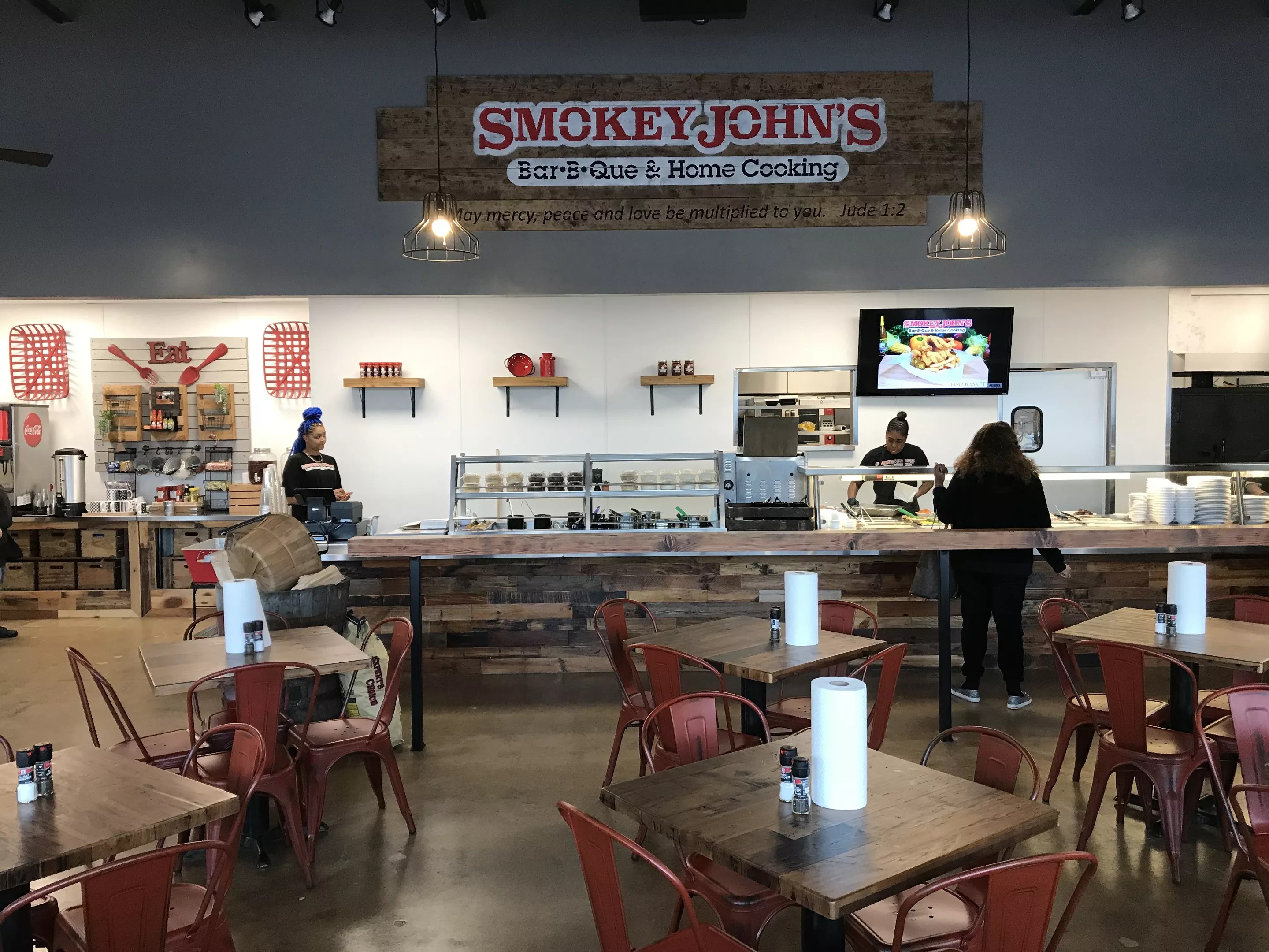 The newly renovated Smokey John's BBQ, which closed over a year ago after a devastating fire.