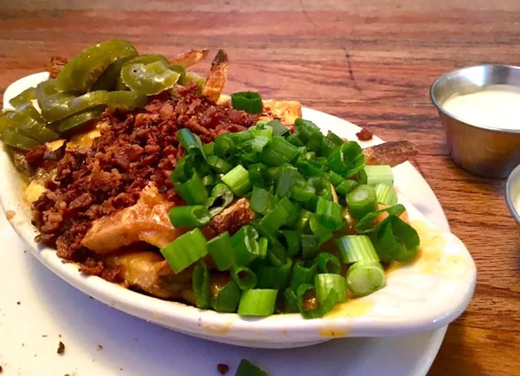 This is bar food, thoughtfully executed for four decades with staggering consistency. Yes, the fries are calorie-destroyers, diet bombs of cheese and potatoes, but that’s not why you’re here. You’re here for fries, beer, and a Hootie and the Blowfish song playing in the background. Some chefs opt for frozen fries because of the magical way they crisp. Some do fresh, and some upend a homemade American cheese sauce over everything with chopped green onions.
