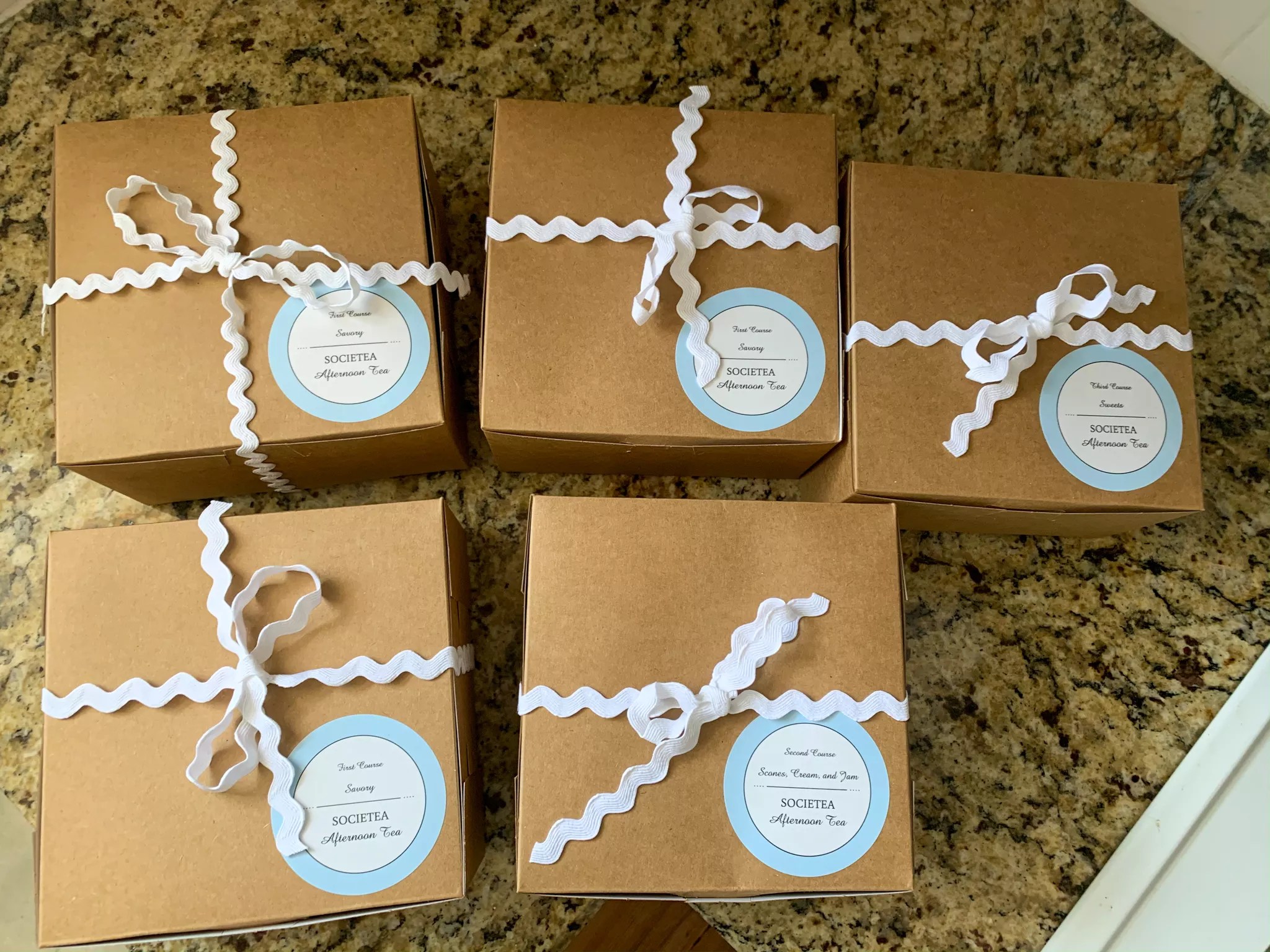 What tea time looks like during a pandemic: to-go boxes