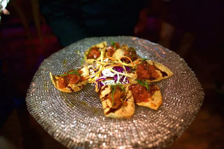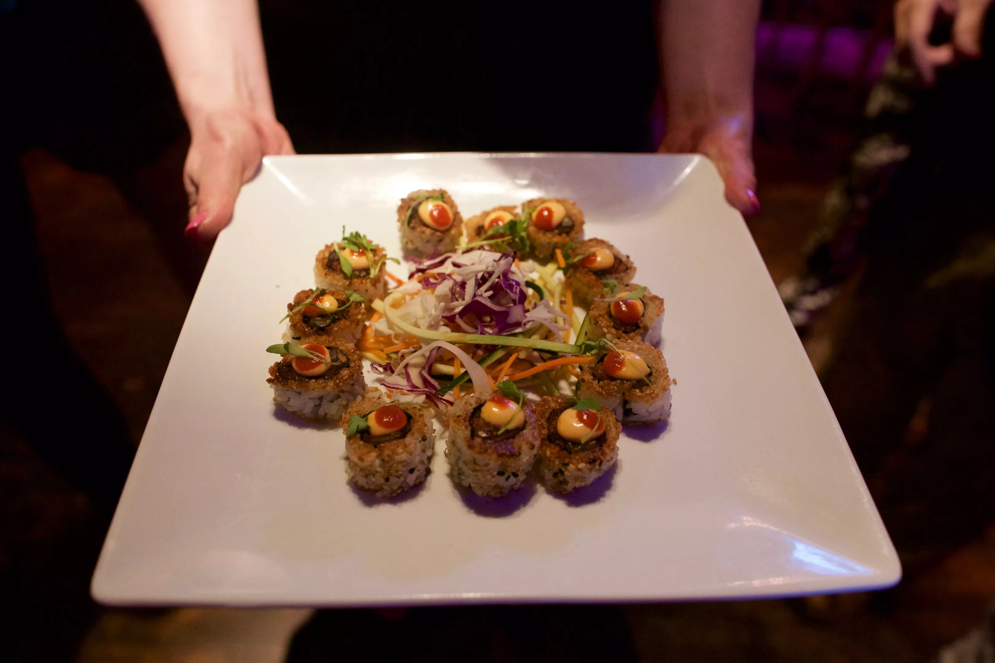 Thomas’ new menu had some impressive creations. In a unique twist to an old sushi standby, he updated the California roll by giving it a hot-oil sear to add crunch. The shrimp firecrackers, which will be a menu staple as part of a bento box, were stand-outs, and Thomas will add a tuna poke bowl later this spring.