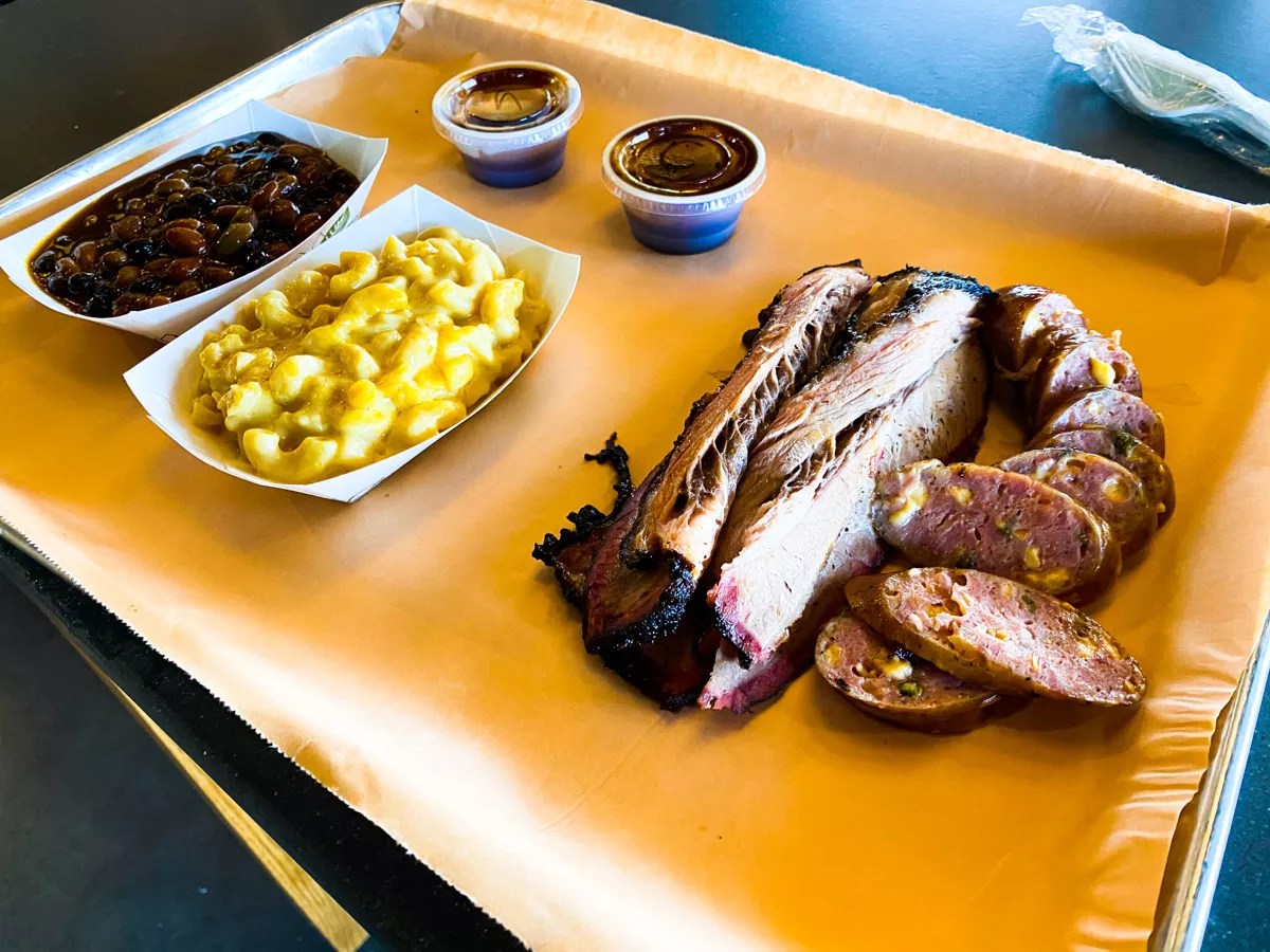 Let’s be honest. We were also a little curious about a St. Louis barbecue restaurant setting up shop in Texas, where barbecue is near-religion for many. Our thirst for knowledge is only exceeded by our hunger for good barbecue, so a visit was in order.