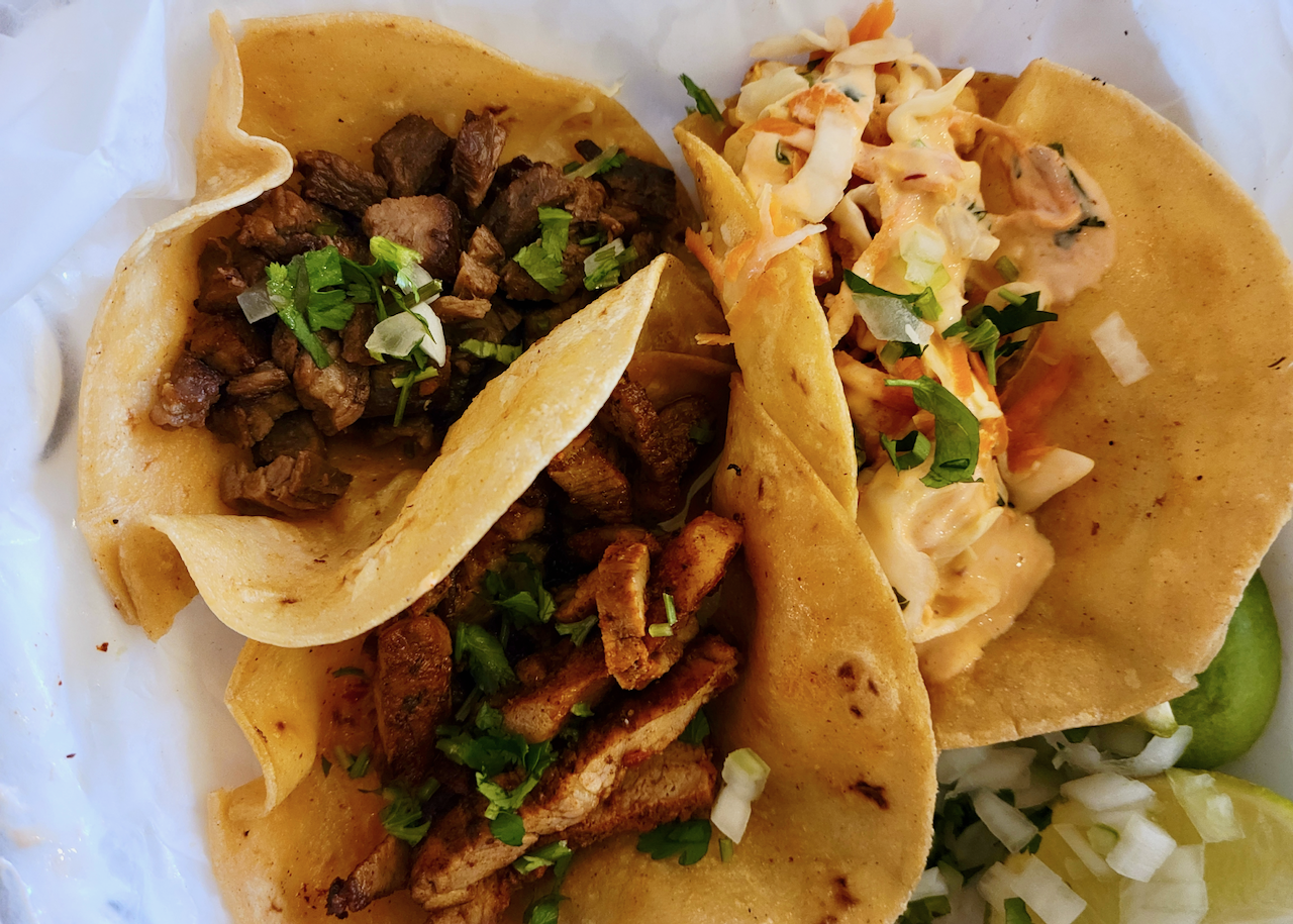 Pastor, barbacoa and shrimp tacos