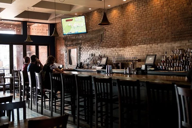 As part of the Statler’s multimillion-dollar facelift, the downtown hotel added several new food and drink concepts, one of which is tucked away beneath the modern new lobby. To get to Bourbon & Banter, you’ll head downstairs into a small wood-paneled room with only a shoe shine setup and a payphone. A host will inquire about your party before entering the phone booth and dialing in a code that opens up a previously hidden door leading into the small, dark speakeasy. This “swanky underground lounge” boasts a hefty bourbon selection and a cheeky menu of $15 cocktails that come garnished with everything from a bruleed exterior that requires cracking to a pink libation adorned with the word “FUCK” printed on wafer paper. Already a favorite among out-of-towners and those of us showing them around, this dark cocktail lounge quickly became one of our favorite date night (or girls’ night) bars of 2017.