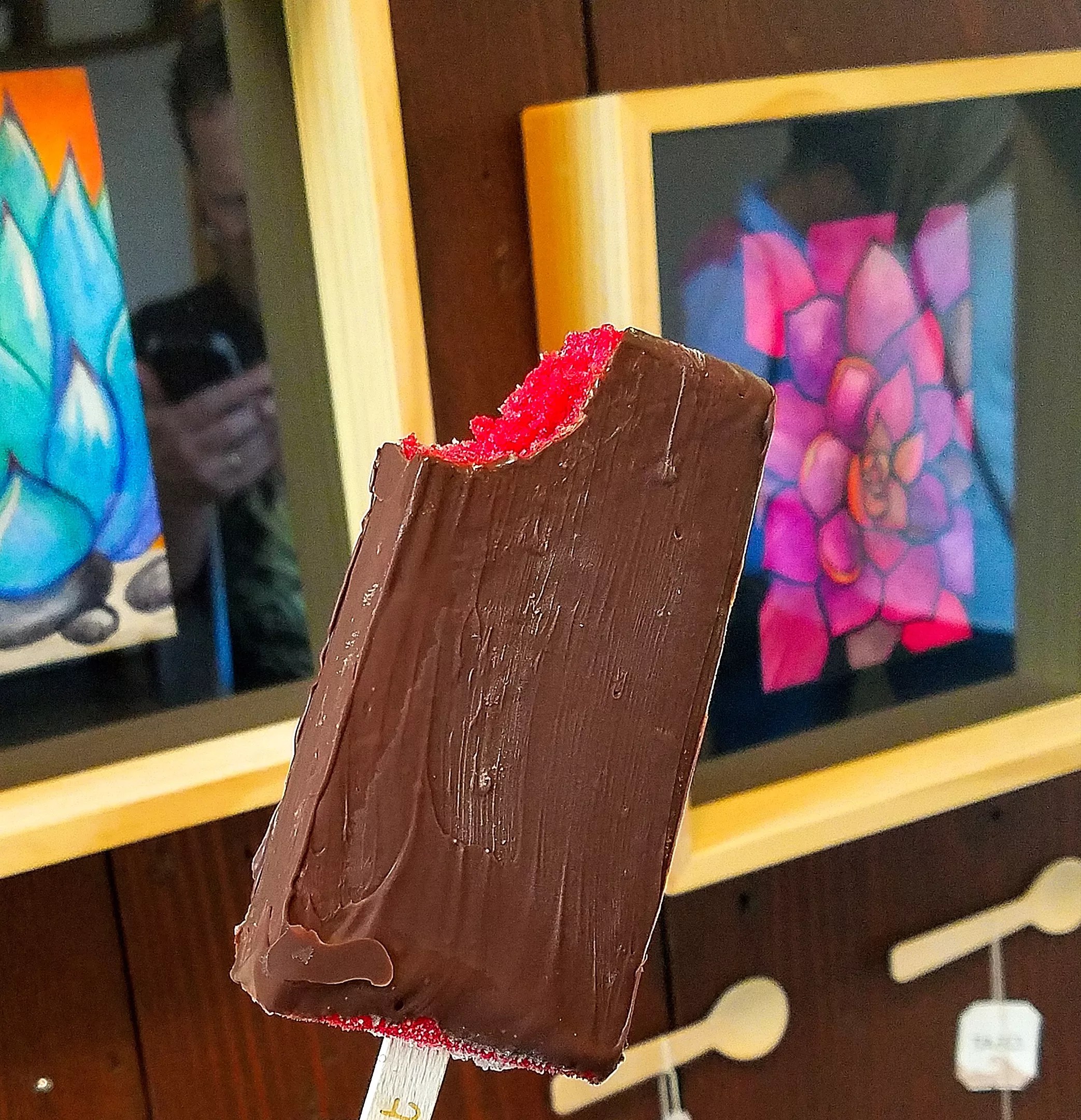 Pop Factory CocoAndre’s raspberry dark chocolate pop is art you can eat. Kellie Reynolds