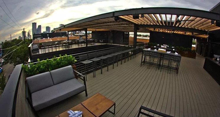 This karaoke haunt atop The Cedars’ Alamo Drafthouse offers not just one patio to enjoy the skyline, but two. The front patio is directly off the restaurant and bar area, but sit back and relax with a boilermaker on the back patio and watch a movie on the wall, or just take in the view.