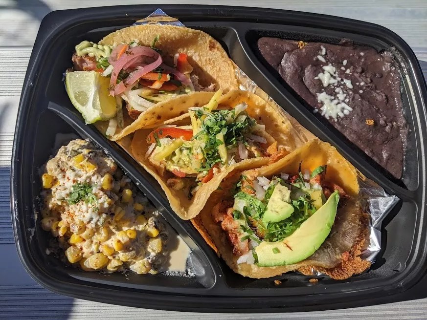 The award for coolest takeout container? Well, that’s got to be Urban Taco’s three-taco plate, which comes in a huge tray with separate side pockets for your two side dishes. (If you don’t choose black beans for one of them, you’ve chosen poorly.)