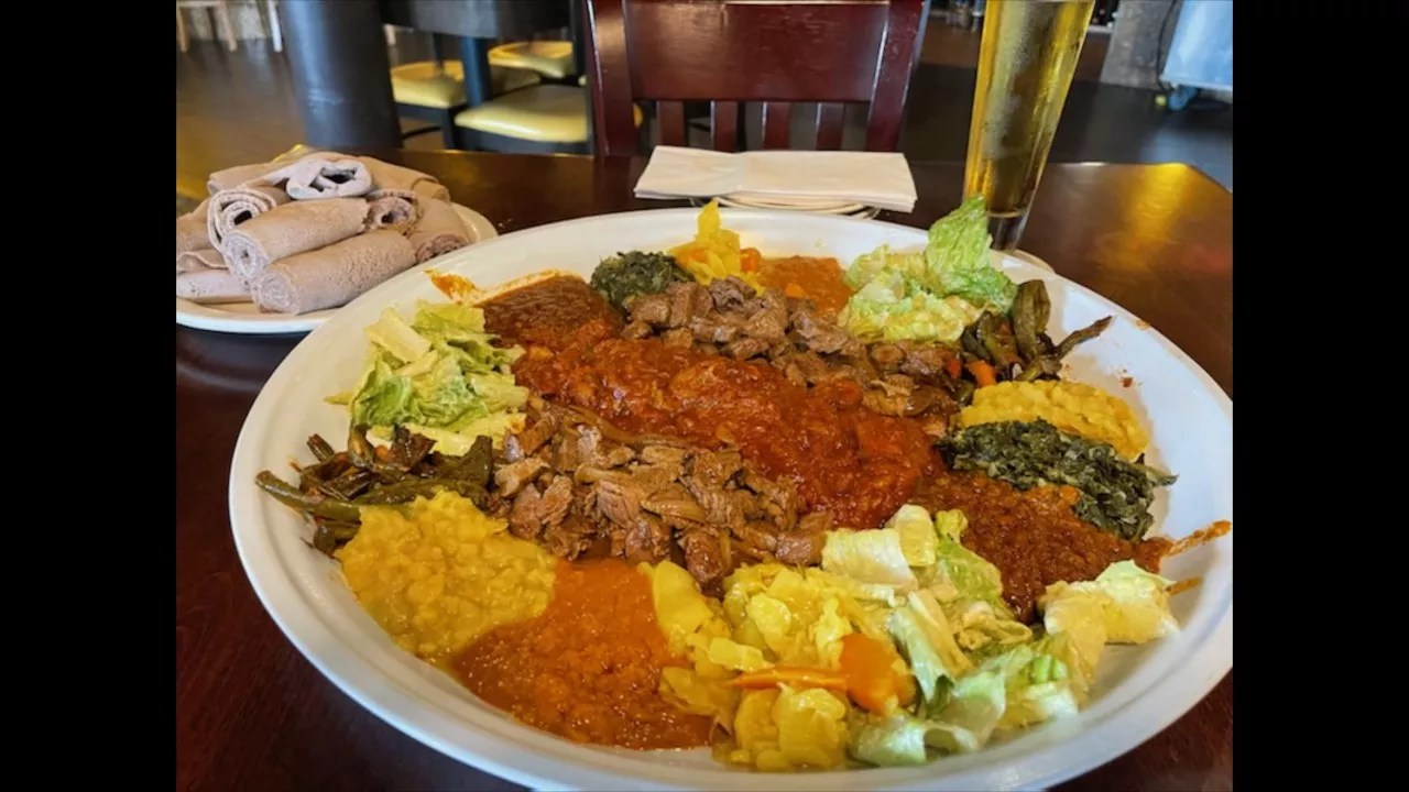 Yenat Guada Vegetable combo for two with siga tibs and fish goulash. Nick Reynolds