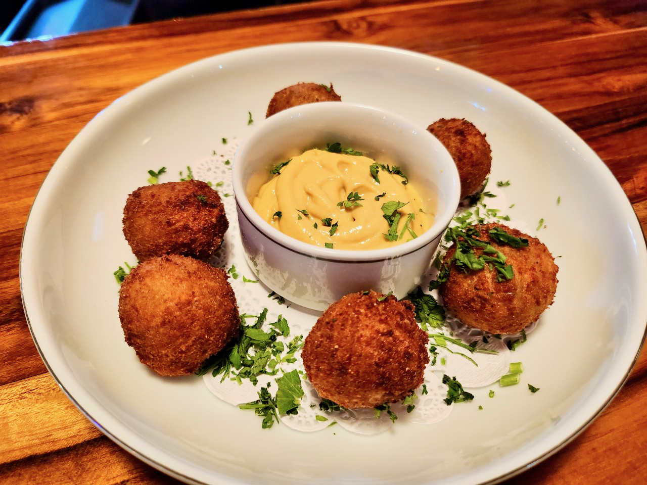 The smash-style X-Tudo (sheesh-tu-du) uses freshly ground Rosewood wagyu beef with a maitake aioli spread and perfectly melted gruyere cheese oozing between the layers of beef and topped with shallot marmalade and malagueta pickles that provide a subtle heat. All of these ingredients are placed between a soft sourdough potato bun (made at Doughregarde’s Bake Shop). The burgers are sold only during happy hour (Sunday through Thursday from 4:30 p.m. to 6 p.m.) and they make only 10 of them each day, so plan to get there early if you want one of these coveted, melt-in-your-mouth burgers in your belly. (by Angie Quebedeaux)