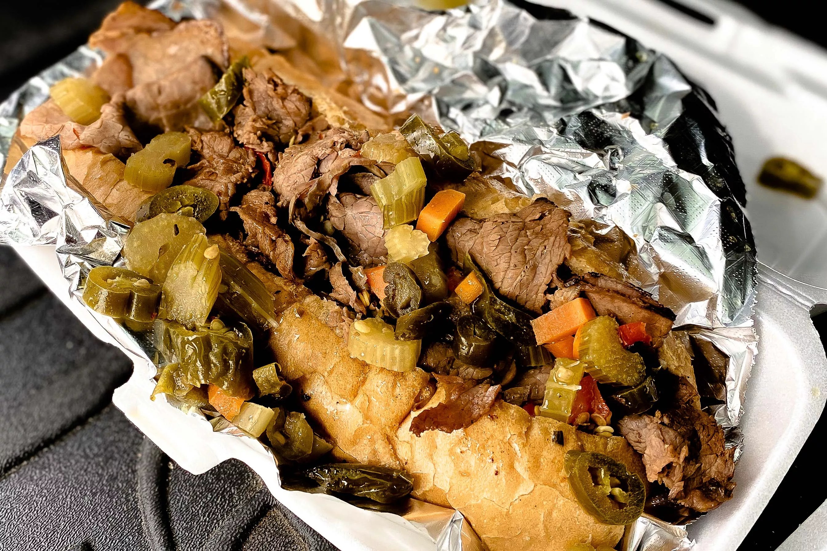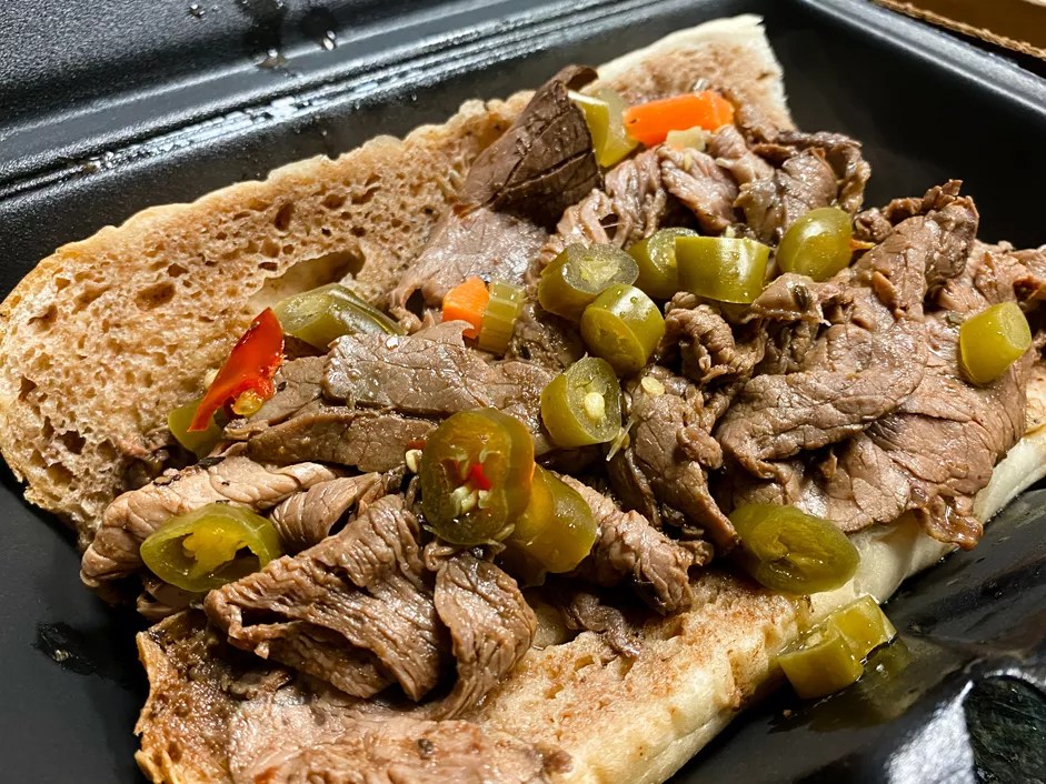 This spot sits in the shadow of AT&T Stadium in Arlington and has a pretty diverse menu that offers wings, chicken tenders, pizza, catfish, shrimp, and yes, Italian beef sandwiches. I was a little dubious about a beef from a place that also fries chicken wings and fish, but after I ordered, the cashier asked how we wanted it (“dipped”), and if I wanted hot or sweet peppers. So far, so good … until she asked if I wanted cheese on it. Oh well, as the late Meatloaf once said, “Two out of three ain’t bad.”