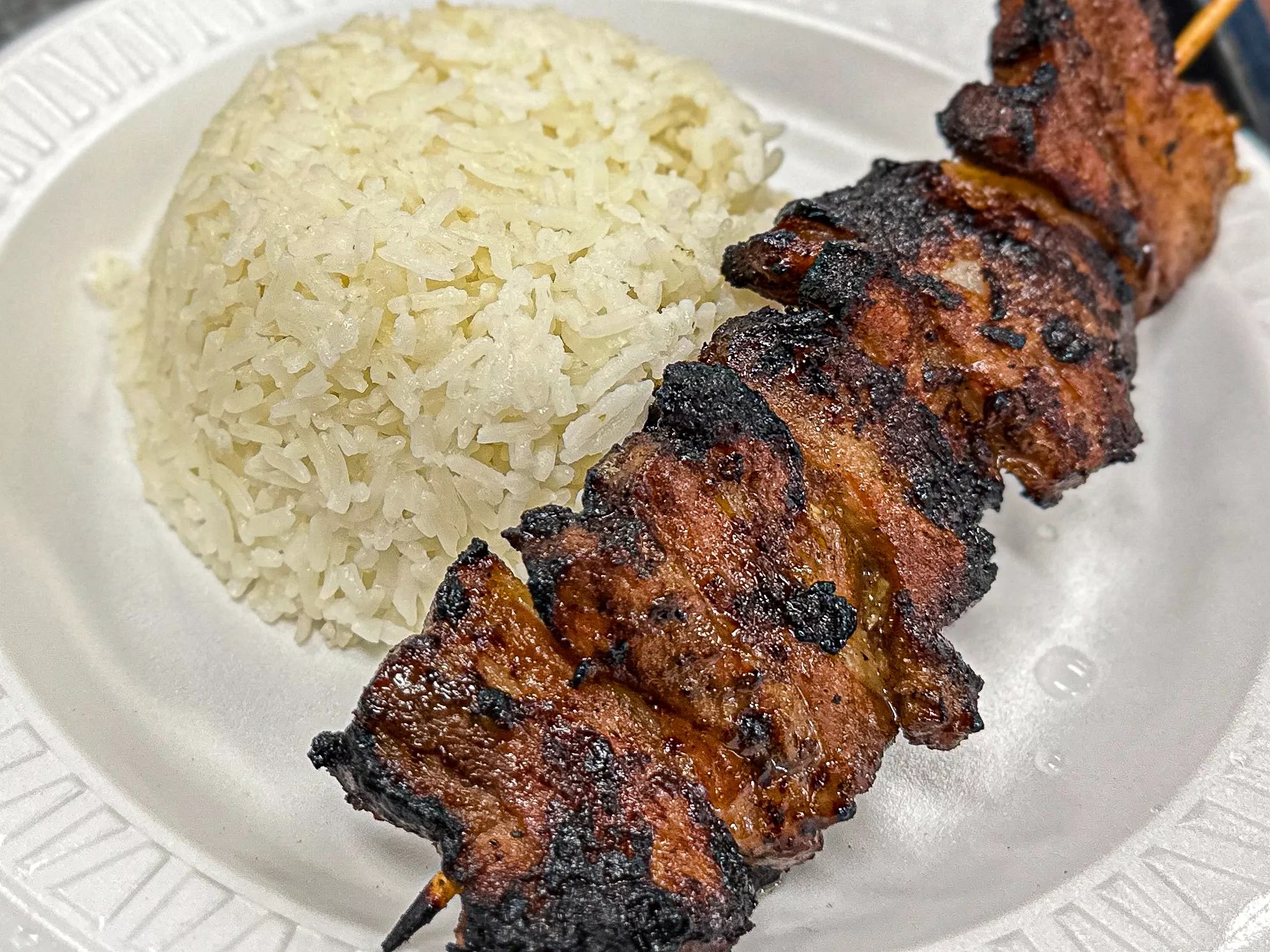 3225 S. Jupiter Road, No. 100, Garland BBQ pork stick with rice at Kabayan Filipino Food & Café in Lewisville. Hank Vaughn