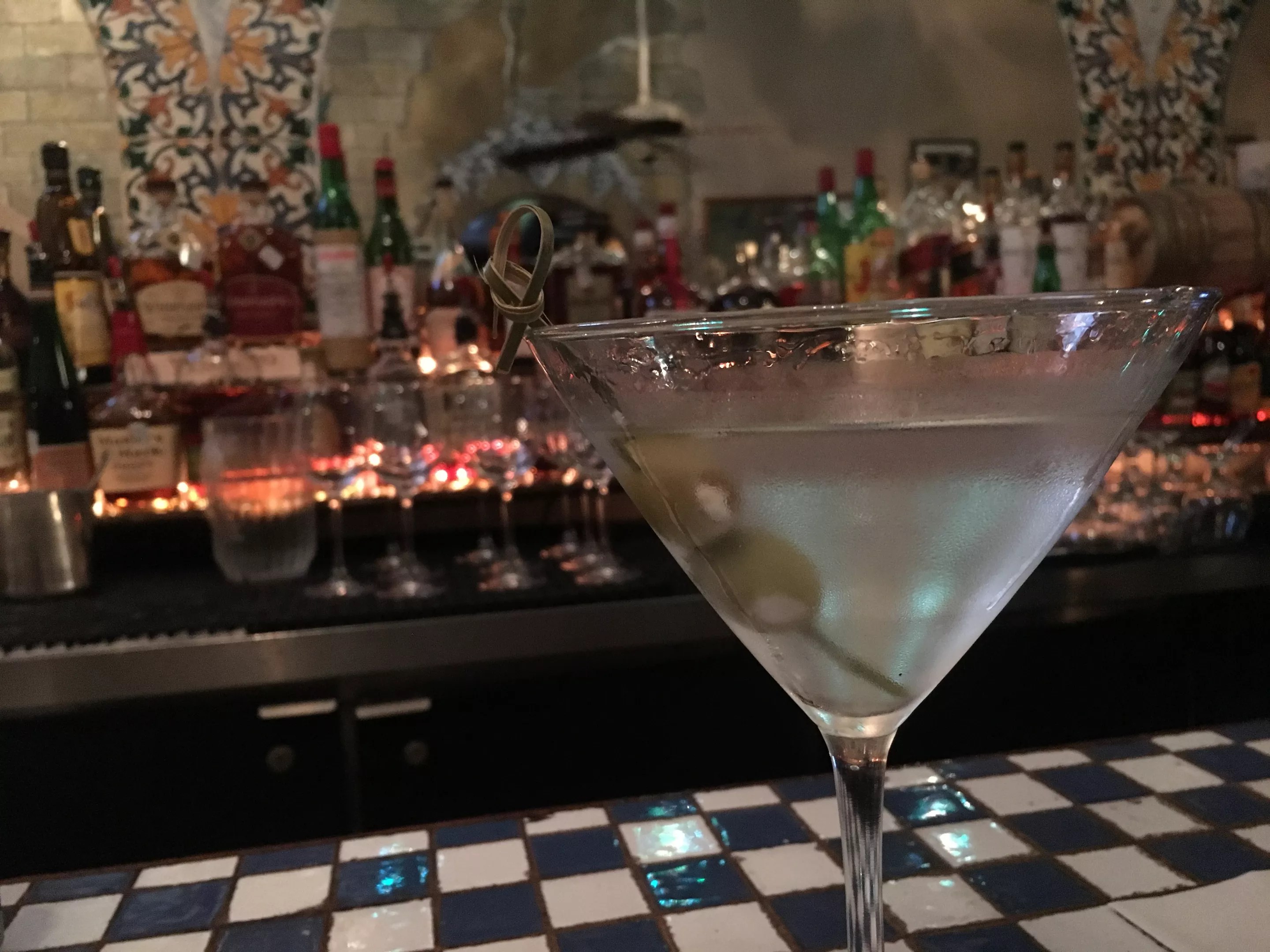 Housemade Boursin cheese, stuffed in olives, in an ice-cold martini
