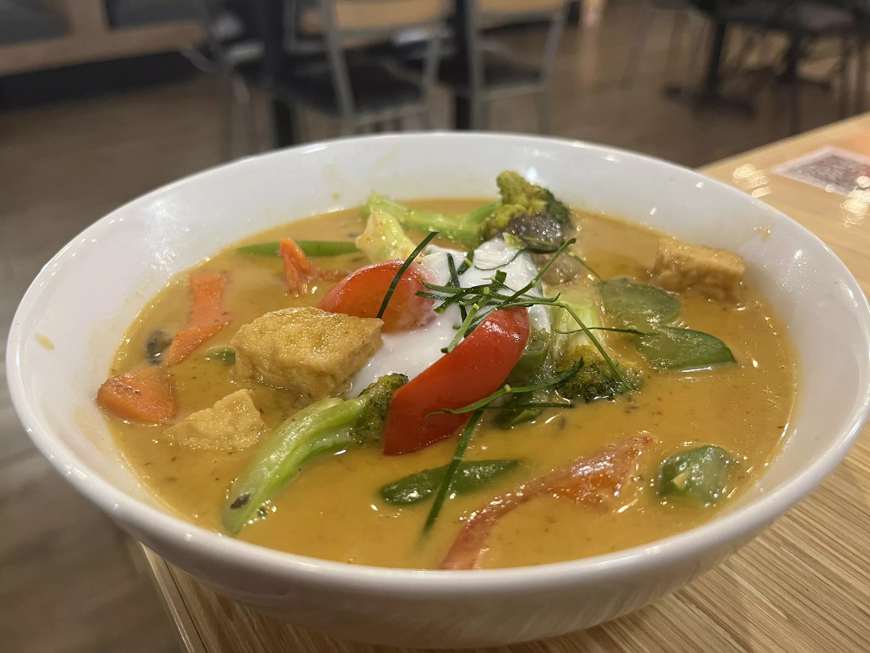 The panang curry here can be customized with as much (or as little) spice as you like.