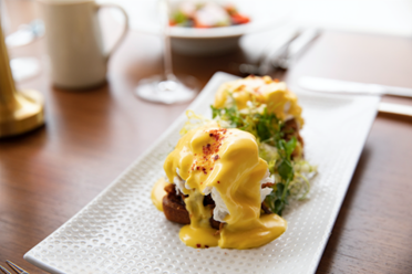 The pulled pork and barbecue eggs Benedict from Flora Street’s new Sunday brunch menu.