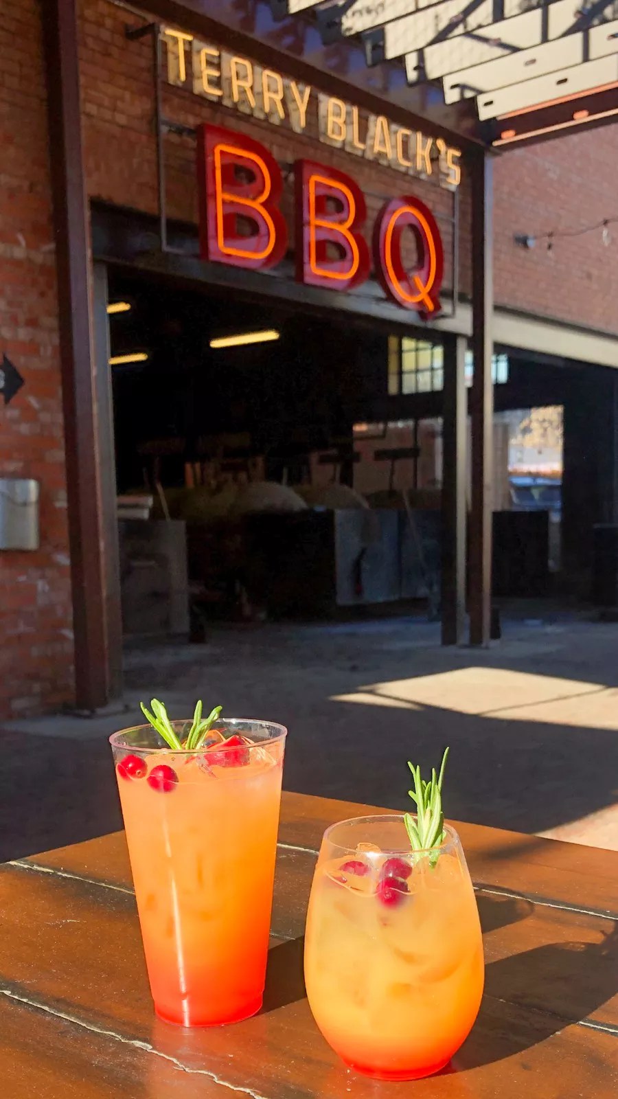 It’s not on the menu, but if you’re grabbing some barbecue at Terry Black’s, you can ask for an orange-cranberry mocktail, made just for the holiday season. The fruit juices are mixed with Sprite and a dash of grenadine, then garnished with cranberries and rosemary.
