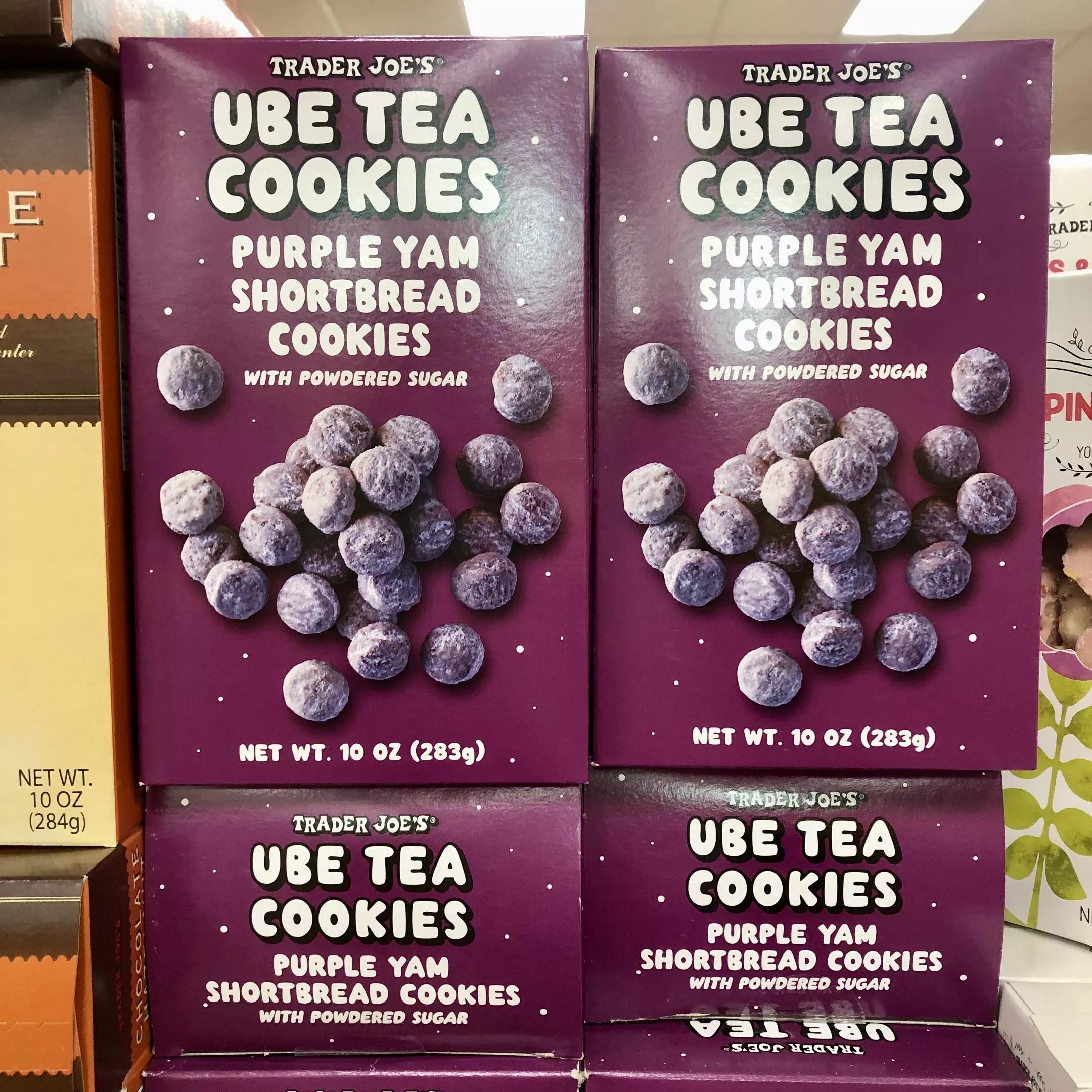 Trader Joe’s says it combines ube powder, cinnamon and vanilla to make these shortbread cookies before rolling them in powdered sugar.