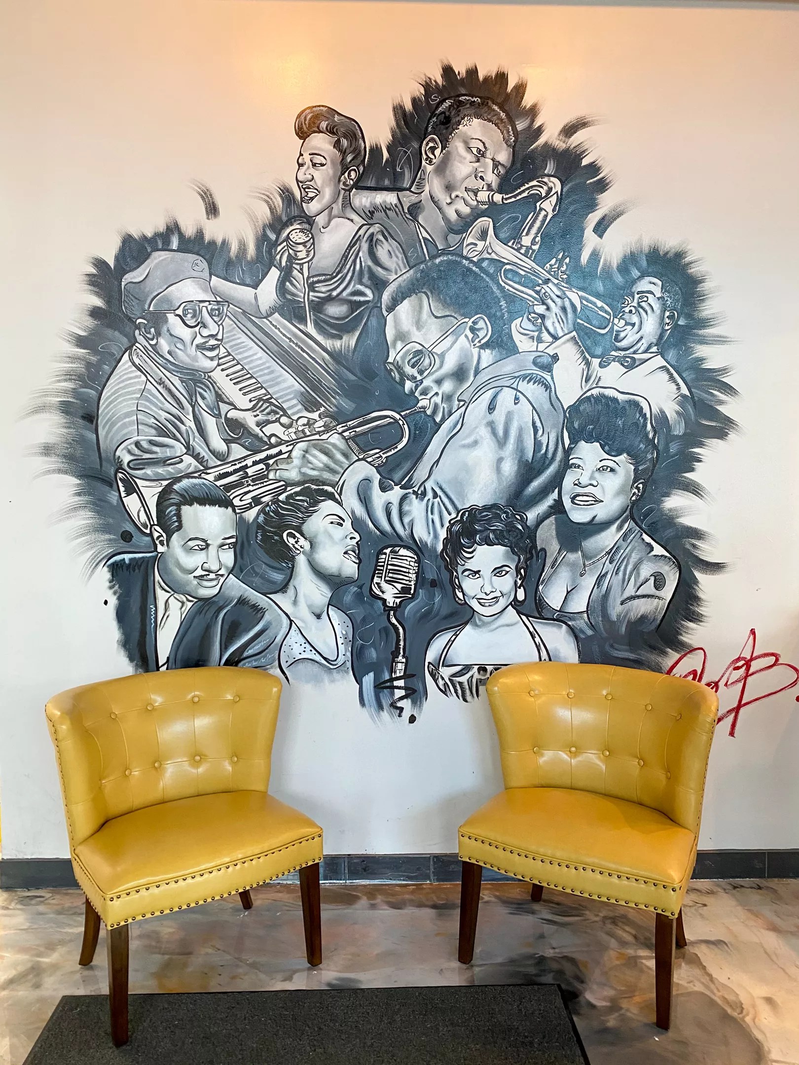The renovated 2,650-square-foot space includes a cocktail bar, coffee bar, performance stage, an outdoor patio and a 6-foot mural displaying prominent jazz artists.