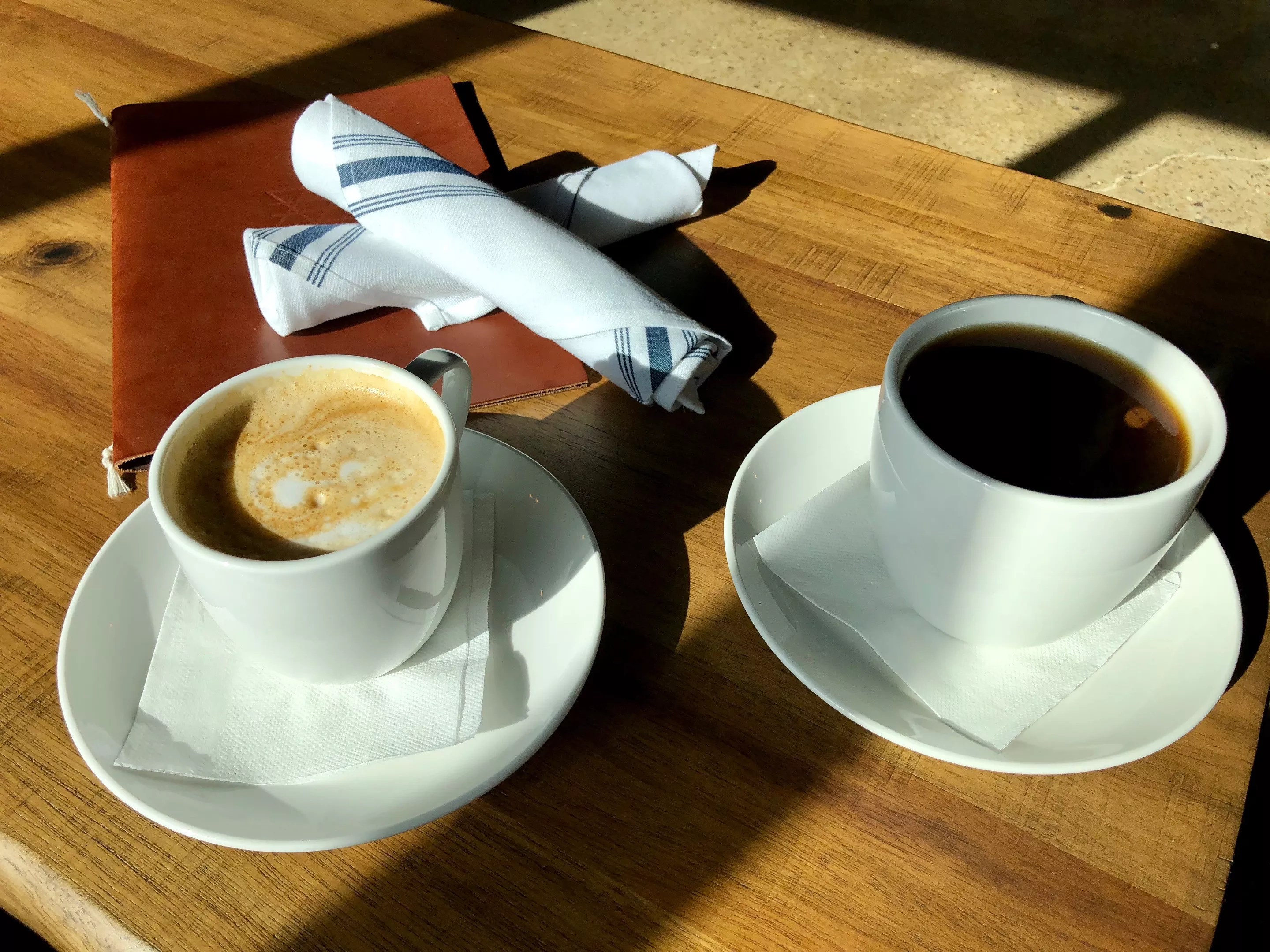 Inside, Urban Alchemy is both industrial and cozy, with leather couches, armchairs, tables and bar seating. It will begin work on a patio soon. The service is attentive and friendly. As soon as we sat down, a barista came to take our order. You can also order to-go items at the register.