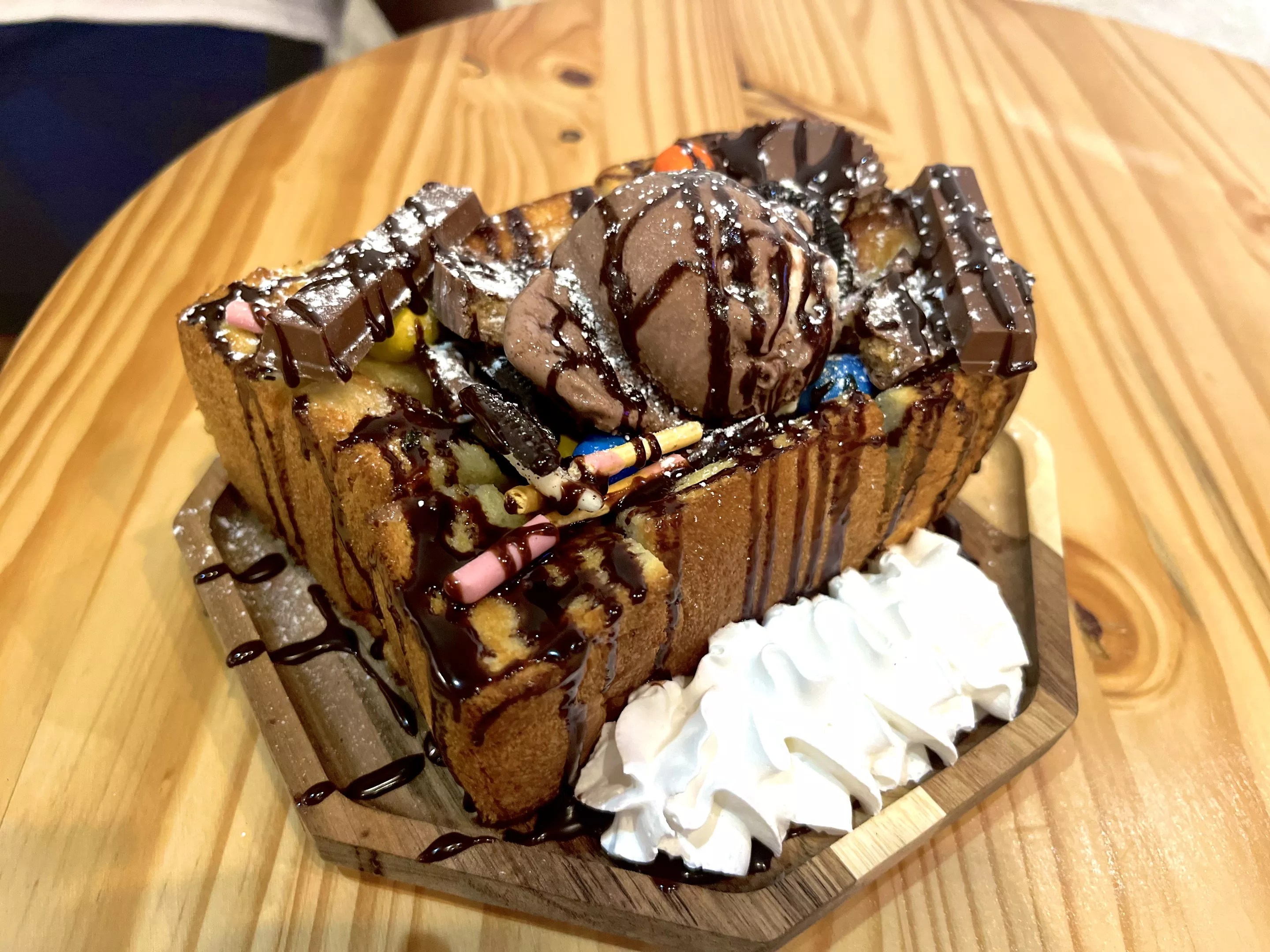 It’s an almost animalistic fight at the table after the dessert’s arrival. Forks and knives are marginally – if at all – useful. The thick-crusted slices of toast, endless piles of toppings and fast-melting ice cream make any attempt to eat with utensils easy to abandon. If you’re like us, you’ll resort to shredding the toast apart with your hands. It’s instinctual.