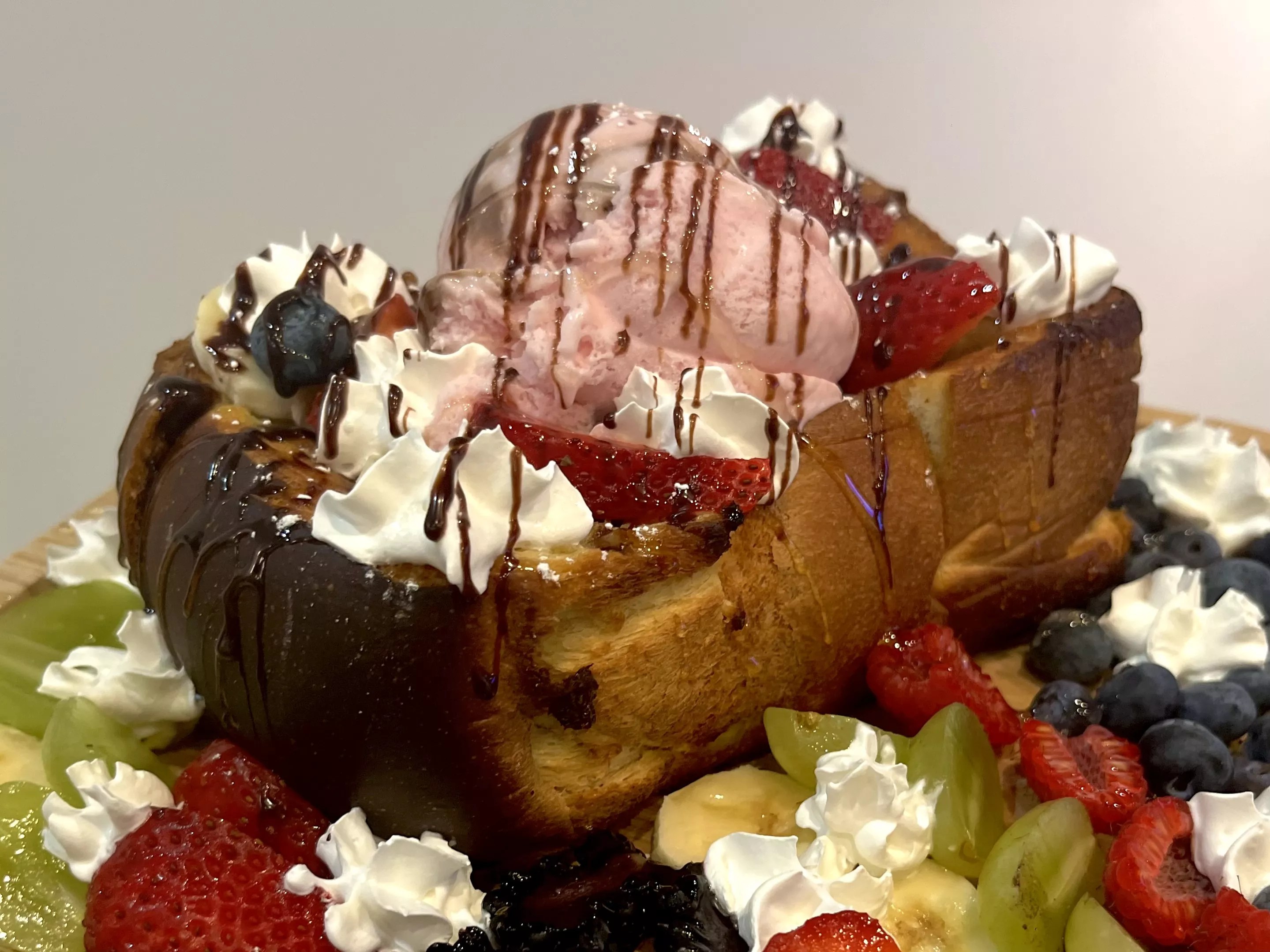 It’s an almost animalistic fight at the table after the dessert’s arrival. Forks and knives are marginally – if at all – useful. The thick-crusted slices of toast, endless piles of toppings and fast-melting ice cream make any attempt to eat with utensils easy to abandon. If you’re like us, you’ll resort to shredding the toast apart with your hands. It’s instinctual.