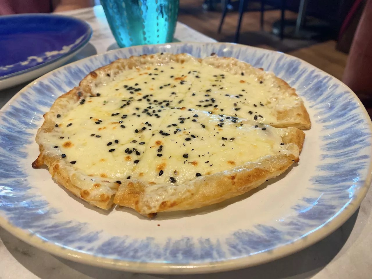 Cheese manakeesh with akawi, mozzarella and nigella seeds.
