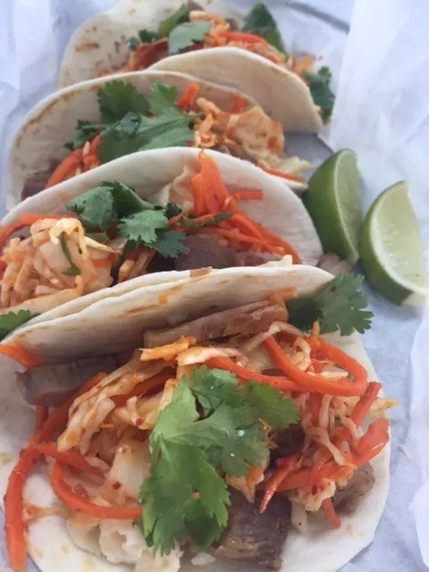 Inside, a bit of softly scrambled egg is layered with a fresh, peppery kimchi slaw and hunks of fatty, unctuous pork belly. The tacos’ individual components complement one another, combining soft, chewy, crunchy, spicy, fatty and savory in one neat bundle. Perhaps the only thing missing was something saucy to tie everything together and provide a bit of extra moisture.