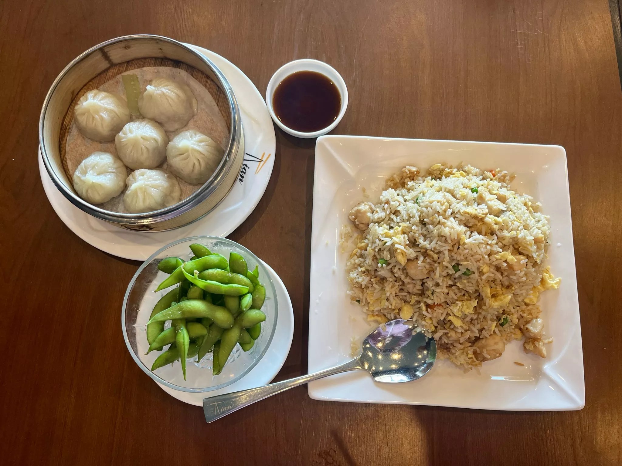 in a matter of minutes. It was a bit intriguing to watch the Wall-E-like robot scoot across the restaurant with the appetizer in tow. A few minutes later, dumplings and steaming fried rice appeared at the table, again with the robot commanding the room.