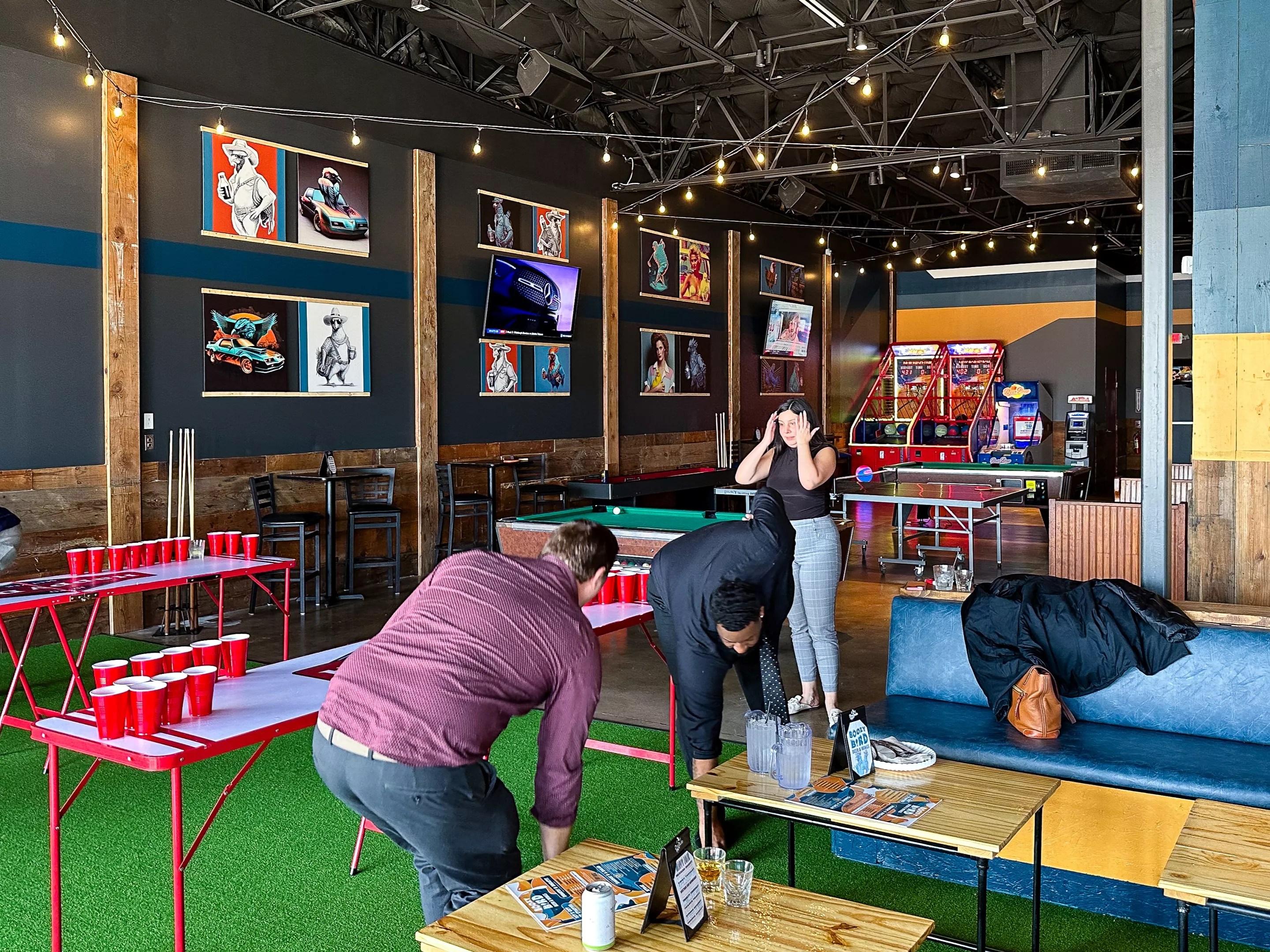 What once held the Carrollton ChopShop Sports Garage is now the new home of Boozy Bird. It’s a more or less even swap of burgers, bar grub and automotive puns for wings, tenders and bird puns. There are also video games, a pool table, a ping pong table and not one but two dedicated beer-pong tables resting upon astroturf. It all really lets you forget you’re inside a chicken-themed bar in a strip mall in Carrollton. Well, that’s probably the goal, anyway. If you’re in the mood for a rousing game of beer pong or some pool, you’re in luck. Hank Vaughn