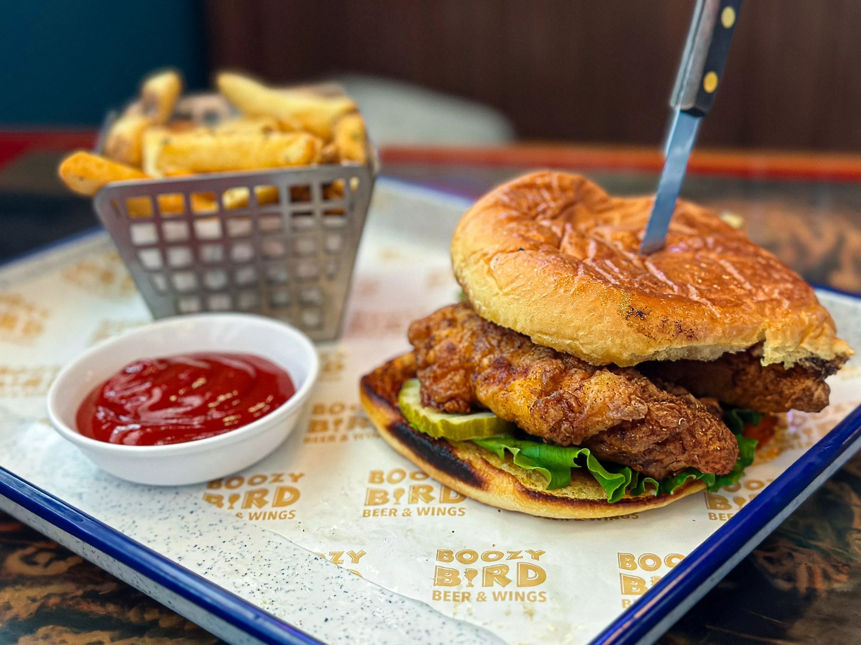Boozy Bird has several beverage options, and they seem especially proud of the selection of over 40 local and Texas canned beers, ranging from $3.75 to $5 each and including Altstadt Heffe, Lakewood Temptress, Four Corners Local Buzz and Karbach Hopadillo.