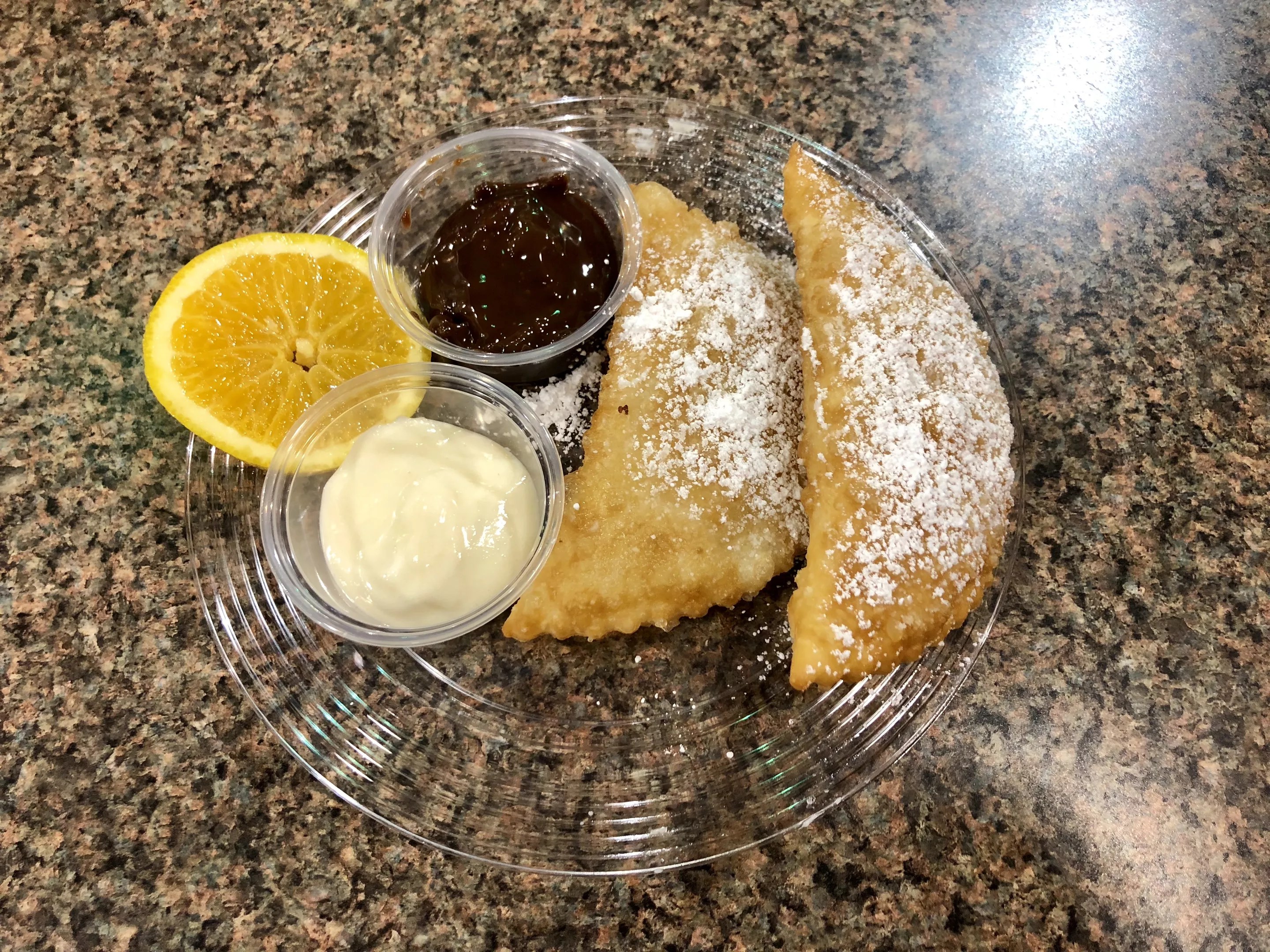 The Orange You Glad We Fried It?, an empanada-like pastry filled with chiffon orange cake, whipped cream and orange preserves.
