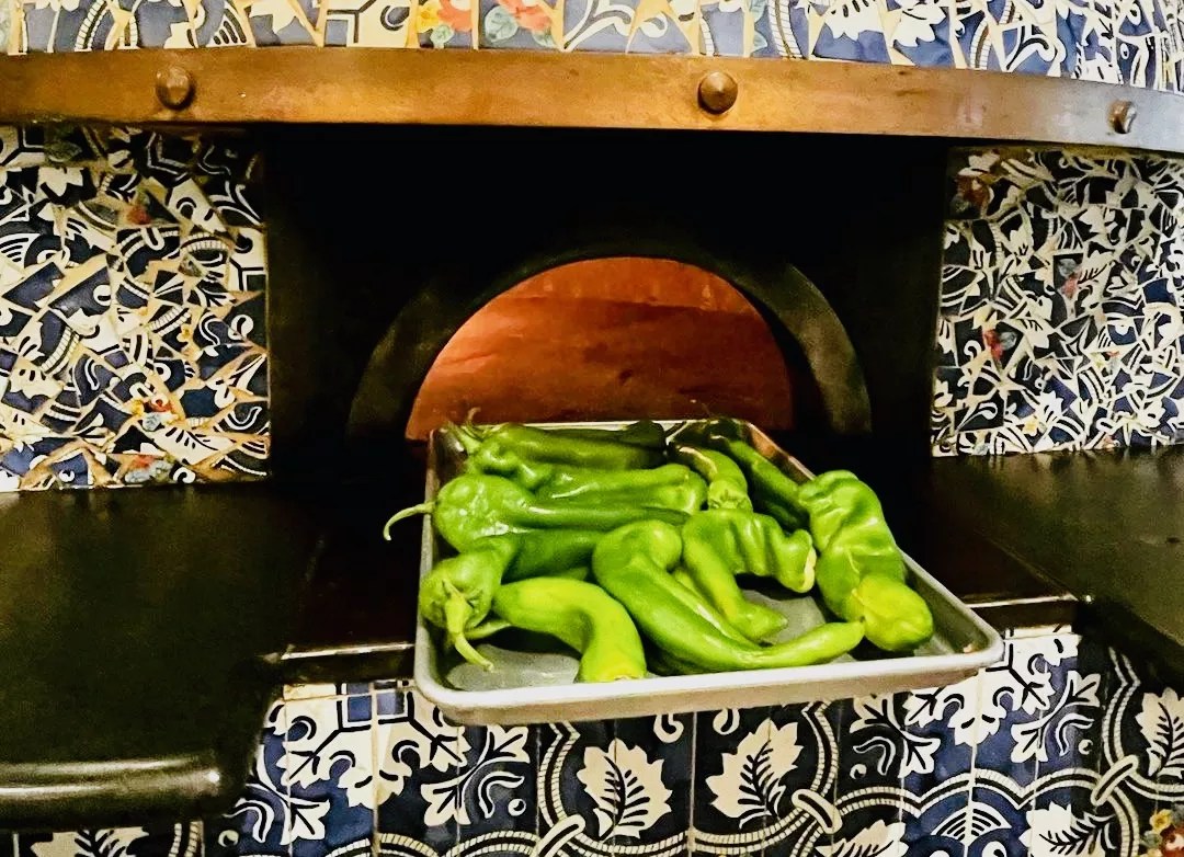 Hatch chiles seared in the brick oven at Partenope before being put into a puree.