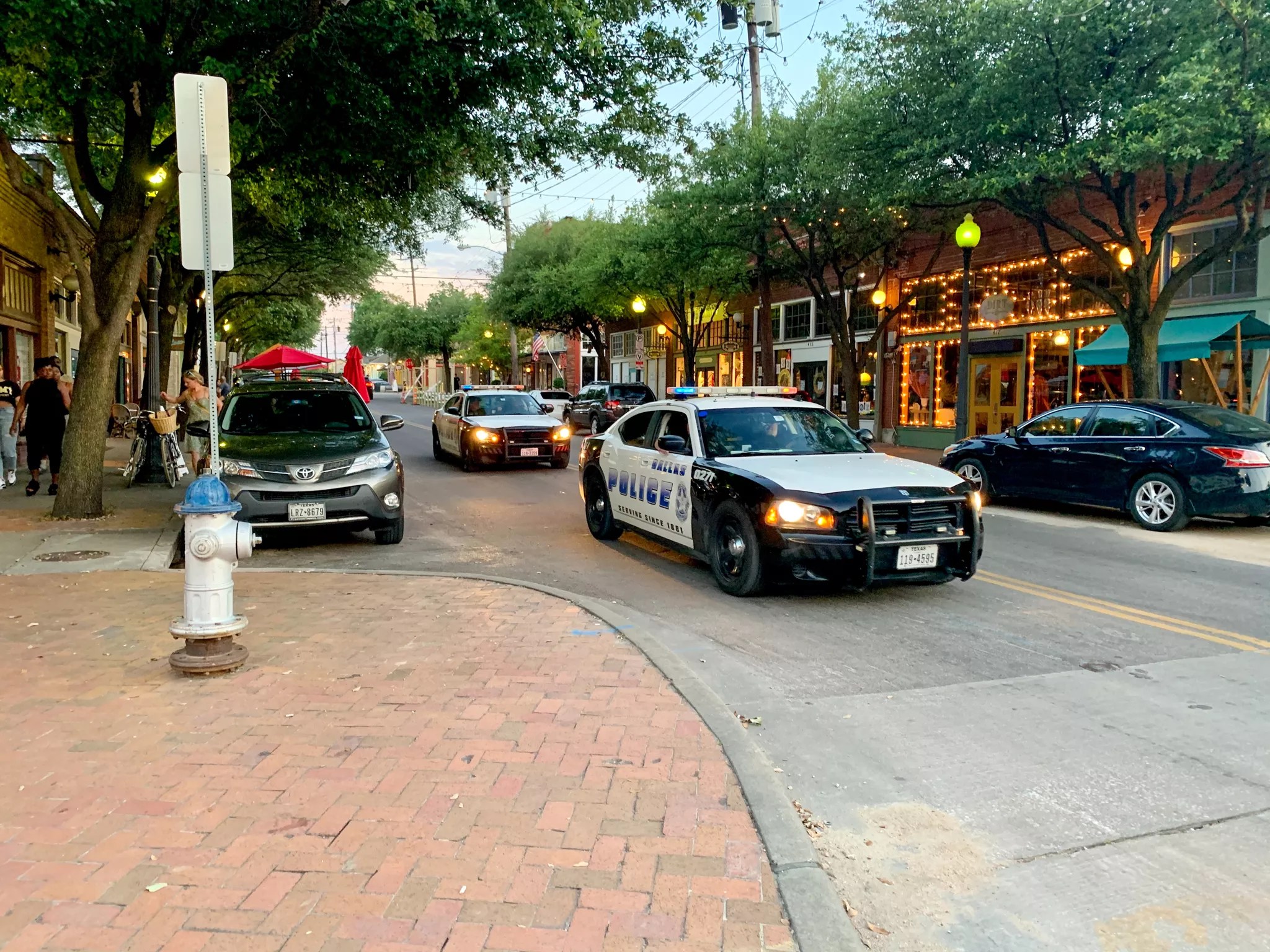 Police patrol Bishop Arts when news spread that 200 protestors were on their way to the neighborhood.