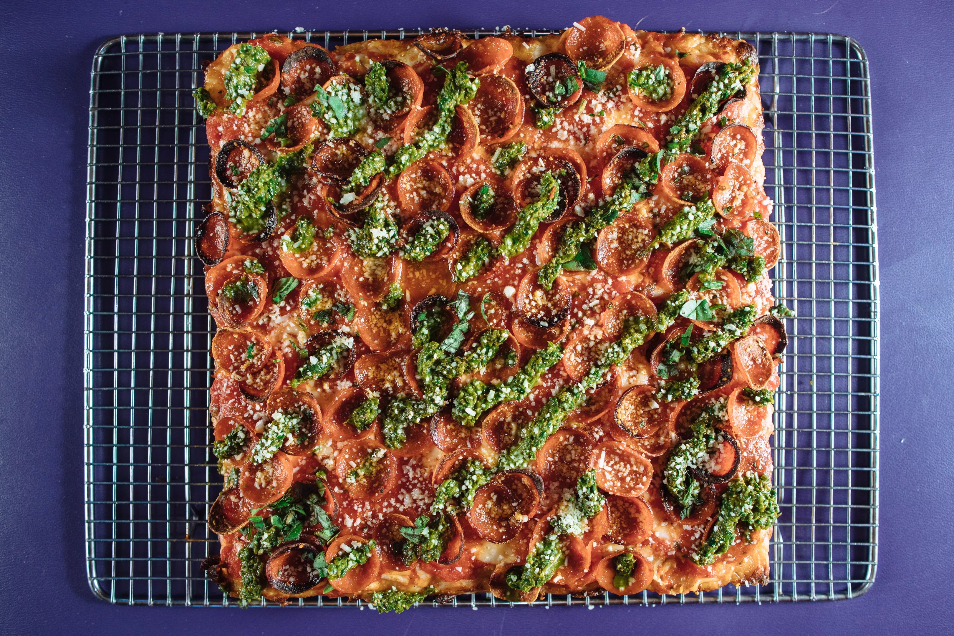 Choosing a favorite Zoli’s pizza is a little bit like taking a personality test. I’m especially fond of the Lil’ Troy ($15 round, $17 square pie), with spicy, craggy meatballs, thin racing stripes of cherry pepper, vodka sauce and a generous blizzard of breadcrumbs that toast up nicely in the blazing-hot oven. (Another sign that Zoli’s does things right: The sauce and cheese, by some miracle, don’t get the breadcrumbs soggy.)
