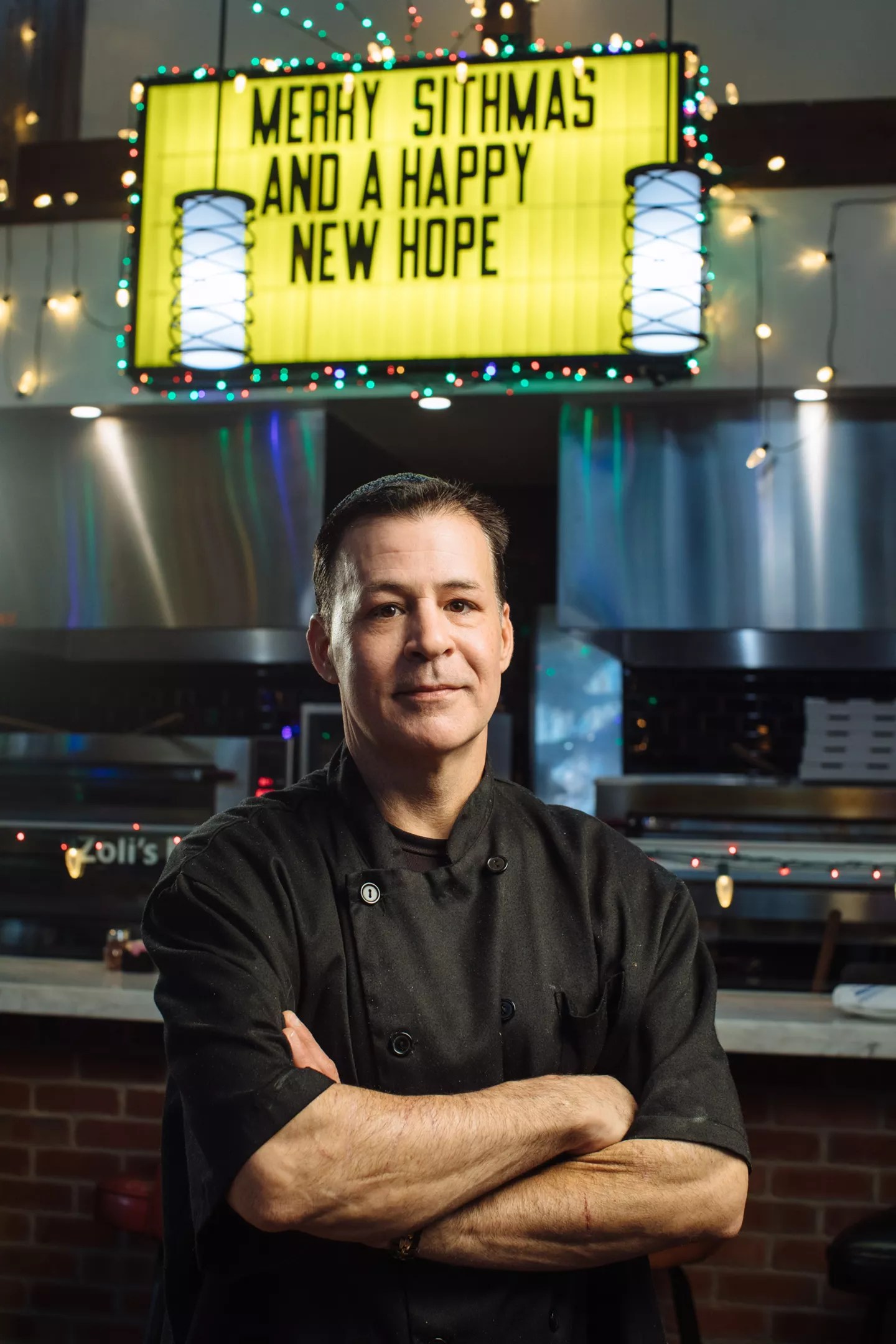 The pizza-making at Zoli’s is righteous. Hold up a slice of the thin-crust round pie. Notice how the crust is crisp all the way through to the center. No matter how many toppings Zoli’s loads onto its pizzas, the middle never gets soggy or goes limp. Toppings don’t slide off. No matter how fatty the ingredients are, the slice will not shine with grease. Few things are as satisfying as the little flash of euphoria at breakfast the day after a pizza run, pulling leftover Zoli’s out of the box and noticing that the remaining slices didn’t leave behind grease stains. Zoli’s pizza master Lee Hunzinger has been making pizzas since he was a teenager. Kathy Tran