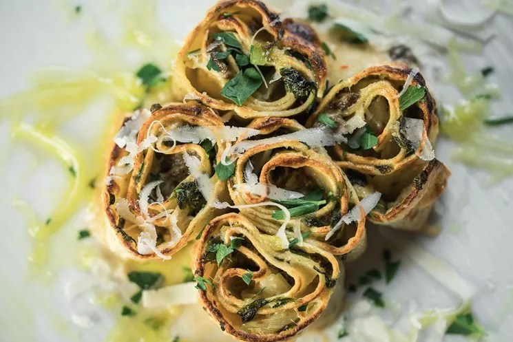 Nonna is one of the best Italian restaurants in Dallas. The menu shifts constantly with the seasons, accommodating fresh produce, new cuts of meat or seafood and the culinary team’s latest pasta inspirations. Some of the pastas, made in-house, are unique to Dallas (no, cavateddhi is not a typo; it’s a smaller cavatelli from Calabria). A wood-fired oven is responsible for some of the biggest hits here, including roasted lamb, veal, quail or gulf snapper and the iconic white clam pizza. That pizza is one of just two menu items that never change, along with justly famous lobster ravioli served in a bowl of broth.