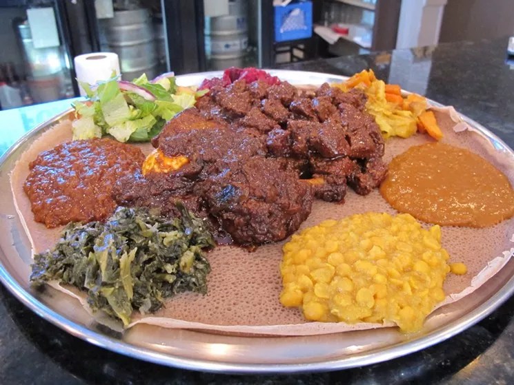 There are plenty of Ethiopian restaurants to choose from near the corner of Greenville Avenue and Forest Lane, but you’d do well to choose Sheba’s Ethiopian Kitchen. Now well-established, it still shines like a brand-new restaurant. The cooking stands out too, with strong flavors, quality ingredients and injera with a seriously sour bite. Start with a vegetable combination, which will round out your plate with a number of vegetable dishes, and then pick one or two meat dishes to fill out your plate. The prices are affordable, the food is interesting and good and you will not under any circumstances go home hungry.