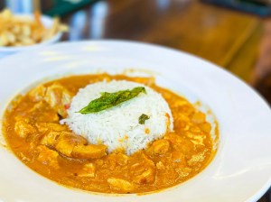 Uncle Jack’s Shepherd’s Pie is prepared with lamb, beef, carrots and mashed potatoes served with house-made brown bread and a side salad. The meat is finely ground and the mashed potatoes that top it all are light and fluffy and just buttery enough. It was a decent-sized portion, and the side salad is a welcome addition to those pretending that shepherd’s pie is healthy food. The pub curry (pictured above) was chicken simmered in a coconut curry served with basmati rice and French fries.