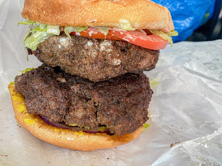 A double burger - at least half a pound of meat.