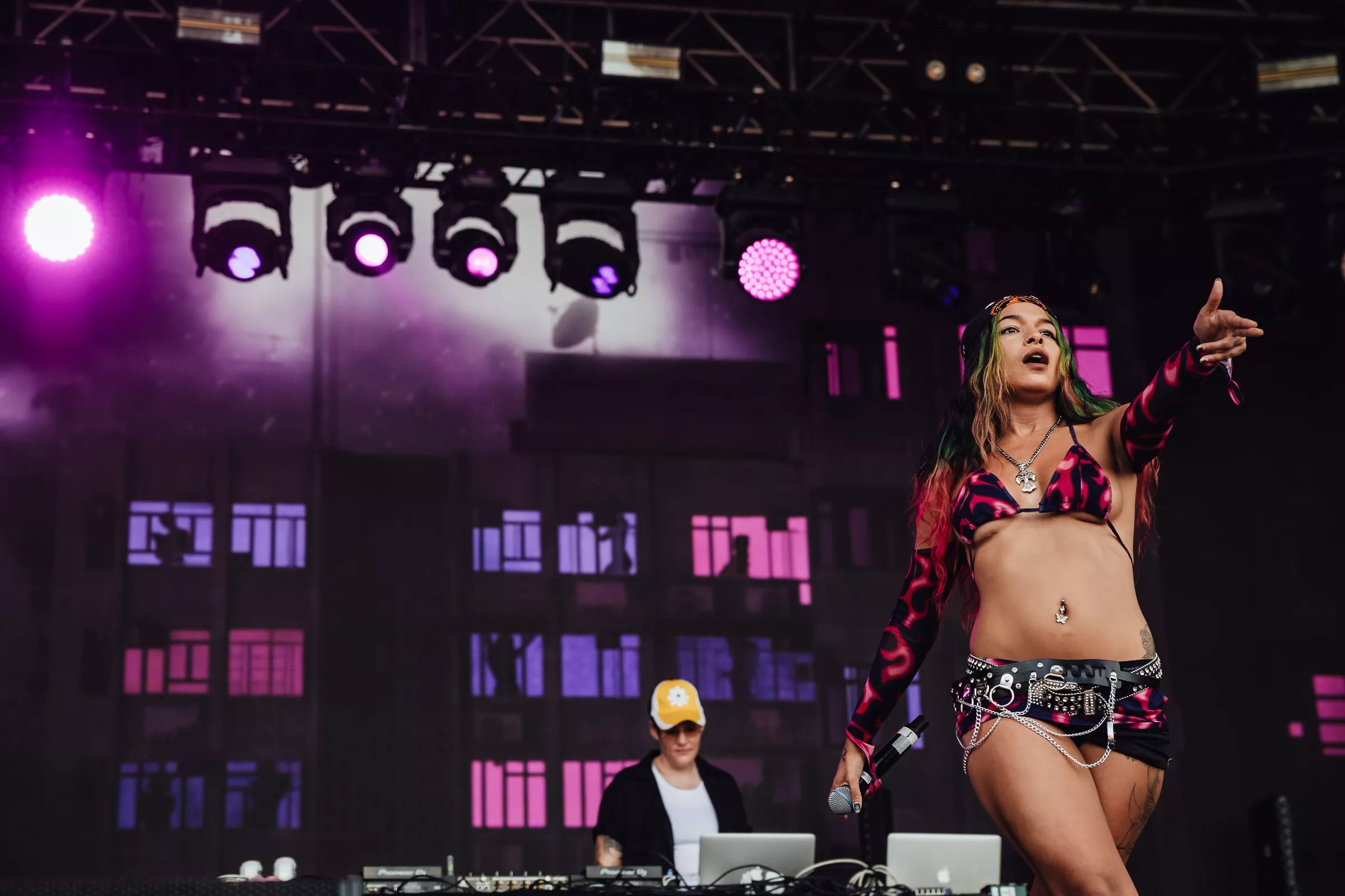 We didn’t know exactly what to expect when we popped over to the T-Mobile stage to see Princess Nokia. but what we got was dancing and being sprayed down by a water gun. It was a wild performance, full of rap, moaning and the rapper yelling out, “Free abortions for everyone!”